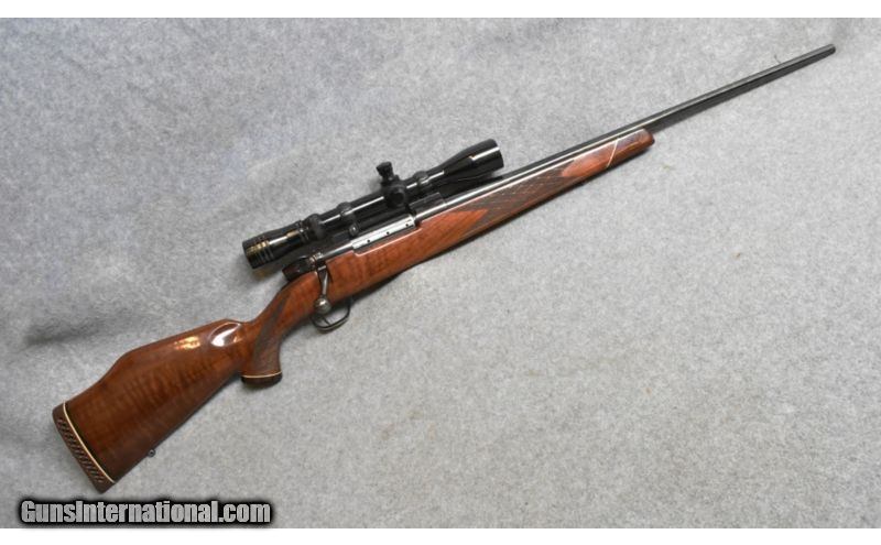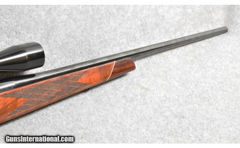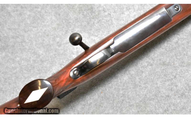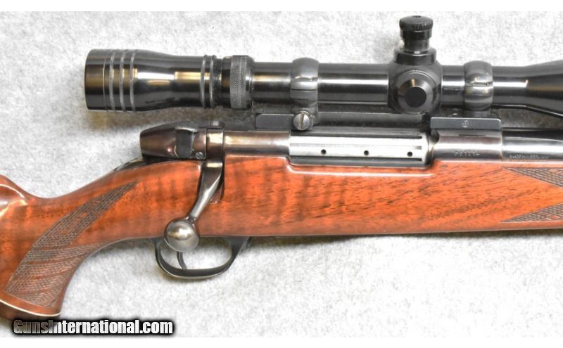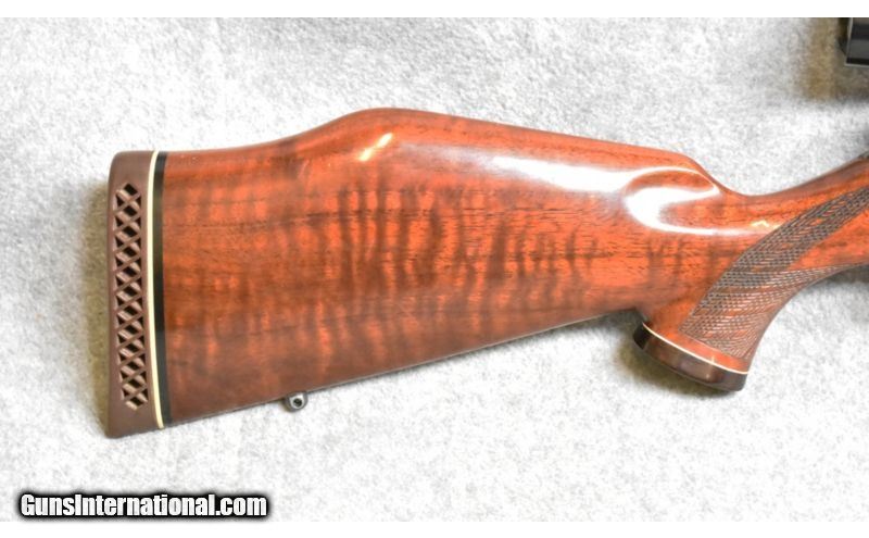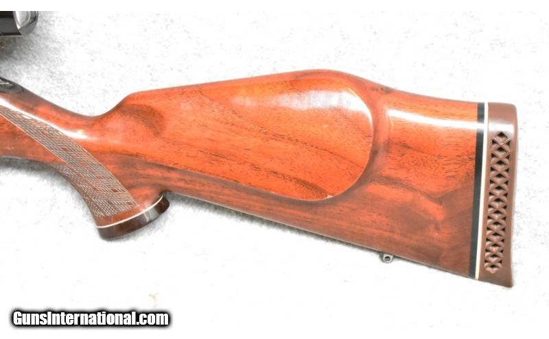 Description: Weatherby Mark V made in West Germany. Redfield 3-9 low profile scope on Redfield 1 piece base. SOLD Caliber Info: .300 Weatherby Mag. Metal Condition: Excellent. Wood Condition: Excellent, a few small marks. Bore Condition: Bright bore with strong rifling. Barrels: 24 inch. Triggers: Single curved trigger. Stock: Monte Carlo, fancy walnut, French style skip line checkering. Stock Dimensions: 13 1/2 inch LOP. Fore End: Straight, fancy walnut, French style skip line checkering. Butt Pad: Original leather Weatherby pad. Weight: 9 lbs. Sights: Redfield 3-9 low profile scope. Item Location: Kansas City, KS |