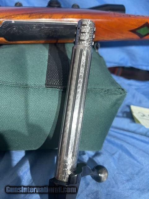 Description: FOR SALE IS A WEATHERBY MARK V BOLT ACTION RIFLE MADE IN GERMANY IN 1950'S BY SAUER FOR ROY WEATHERBY. THE RIFLE IS CHAMBERED IN .300 WEATHERBY MAGMUN CALIBER, AND FEATURES THE MARK V ACTION, 24 IN. FACTORY MAG-NA-PORTED BARREL. DELUXE HIGHLY FIGURED WALNUT STOCK WITH GERMANIC CARVINGS, MONTE-CARLO STOCK ,AND ROSE WOOD FOREND TIP. THE FLOOR PLATE IS ENGRAVED ' WEATHERBY CUSTOM'. THE RBORE IS BRIGHT CLEAN AND IN EXCELLENT CONDITION. A REDFIELD VINTAGE 3X9 POWER SCOPE WITH 'RANGE FINDER RETICLE' IS MOUNTED TO THE RIFLE. THE RIFLES ACTION IS SMOOTH, WITH A CRISP TRIGGER PULL. THE RIFLE IS IN OVER ALL EXCELLENT , USED CONDITION. THIS RIFLE IS A VERY NICE VINTAGE GERMAN MADE WEATHERBY RIFLE. 100 ROUNDS OF NEW WEATHERBY 300 MAG BRASS AND RCBS 300 WEATHERBY DIES ARE INCLUDED. PRICE $2,000.00. SHIPPING/INSURANCE $45.00. 3 DAY EXAM PERIOD, QUESTIONS -504-908-8245, OR CHRISCURIORELICSGMAIL. PRIVATE SELLER. FFL OR C&R REQUIRED FOR TRANSFER, DONT COLLECT SALES TAX SOLD Curio/Relic: Yes Rifle Caliber: .300 Weatherby Magnum Manufacturer: WEATHERBY Model: MARK V MAGNUM Serial Number: 24636 Barrel Length: 24 Bore: EXCELLENT Condition: EXCELLENT Metal Condition: VERY GOOD Wood Condition: EXCELLENT Bore Condition: EXCELLENT Barrel Type: ROUND Triggers: CRISP Stock: DELUX WALNUT Stock Comb: MONTE CARLO Butt Pad: WEATHERBY Finish: BLUED Manufacture Date: 1950'S Item Location: Louisiana (LA) |