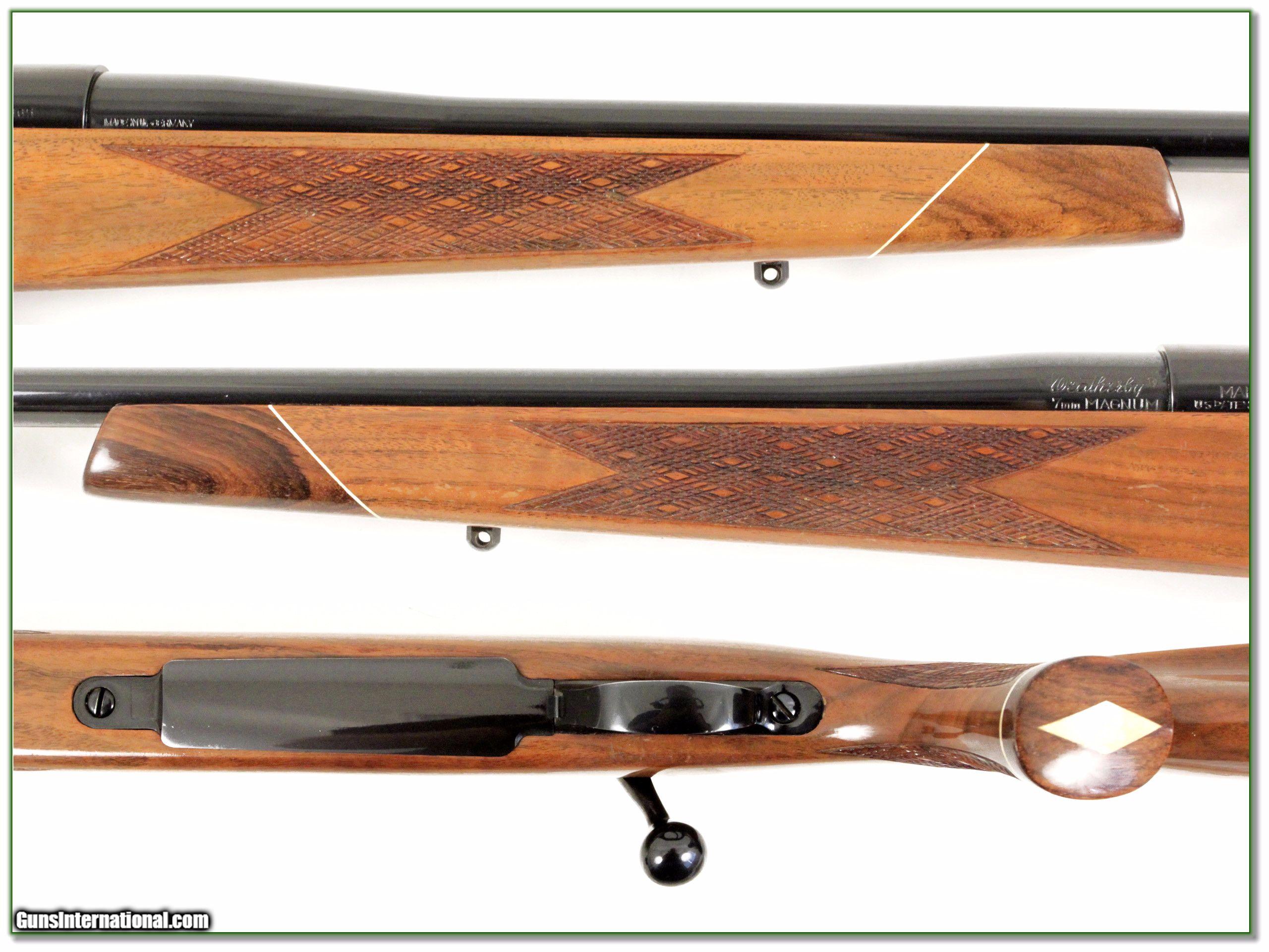 Description: This is a German made Weatherby Mark V Deluxe in 7mm Wthy Magnum! It is in very good condition with only light marks from use. It has a 24in barrel making it the perfect gun for most hunters. It is a classic hunting gun and with the list price of well more than TWICE this price ($2600) you can’t go wrong here! Shipping and insurance is $35 or $15 more if you want it shipped in a new Plano hard case. Please email me with any questions or larger pictures. (Consign your quality firearms with Shooting Investments for only 10%! Let me know if you have any you would like to sell!) 17-1011 Payment: Payment is by Money Order, Cashiers Check or Personal Check. I can now also accept MasterCard and Visa with a 3% convenience fee. PayPal can be used for some items but never firearms. Please let us know if you would like to pay via PayPal. Shipping: The shipping charge will be listed in each description. It is $35 for most guns. Some heavy guns or those insured for over $2000 will be higher. Shipments to Alaska and Hawaii are higher because air shipment is required. Most firearms are shipped within 5 days of receipt of payment. We prefer shipping at the beginning of the week to avoid firearms in transit over weekends. We package all shipments carefully and insure them for the full purchase price, rounded up to the next $100. In the unlikely event that damage occurs, it is important that you save all packaging material for the claims process. Optics are shipped Priority Mail and most other non-firearm shipments are shipped First Class. Returns: Our return policy is simple. If for any reason you are not pleased with your purchase, you may return your item for a refund. The only exception is ammunition, it cannot be returned. It is important to us that you are happy. Guns cannot be fired or dissembled before returning them and must be returned in the same condition as received. Notification of a return must occur with-in 3 days of receipt at your dealer. Shipping, convenience and dealer fees are not refundable and are the responsibility of the buyer. Lay-a-way: If needed, we offer a 60 day lay-a-way option on most firearms. It is 1/3 now, 1/3 in 30 days and 1/3 in 60 days. Lay-a-way firearm sales are final. Consigning your firearms with Shooting Investments: We will help you get top dollar for your firearms. While most local guns shops charge 20% or more, our fee is only 10% with a minimum of $50. At your local gun shop it might take months to sell. Selling on-line provides instant access to thousands of interested buyers. You won’t find any other on-line dealer willing to sell your firearms for only 10% or listing every gun on 4 separate s. Selling through an House typically costs the seller 15% and the buyer an addition 15% (so 30%) and you have to wait several months to sell and longer to receive funds. If properly priced, we will sell your firearms in a week or two. Send us an email or give us a call and we’ll explain how easy it is for you to get top dollar. Trading: We collect guns and usually just trade for guns we want to add to our collections. We often sell guns for others wanting to purchase one of ours. We find this the most fair to both of us. Our Commission is only 10% and we hold the gun you want until yours sells. Please contact us if you want to sell one of yours to buy one of ours. Help for California Buyers: We are happy to ship to California. It is the buyer’s responsibility to make sure any item you buy is legal in your state. We are also happy to help with your purchase of a firearm from someone other than us. If you see a gun you would like to buy but the seller can’t or won’t ship to California we can help. You buy the gun and have it shipped to us. We’ll then ship it to your California dealer. The cost for this service is only $30 + shipping. Let me know if we can help! SOLD |