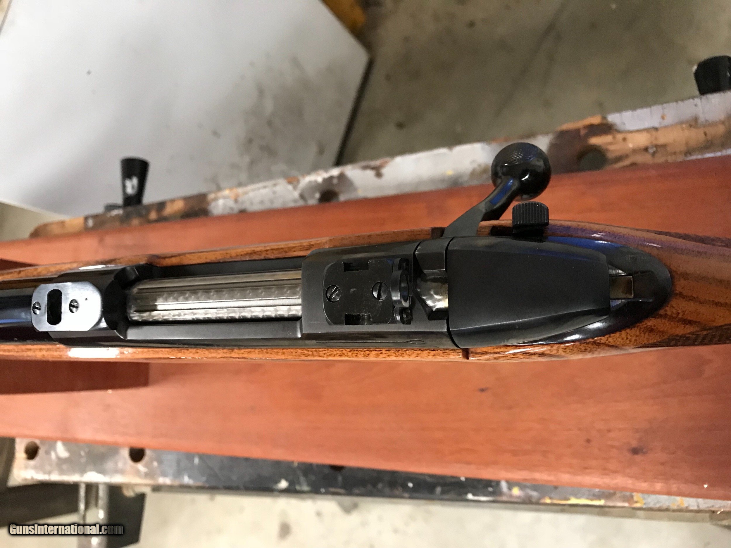 Description: Up for grab is a nice Mesquite stocked .460 Weatheby Mark V. The stock is beautiful double spaced Mesquite. It is a pre P prefix gun with a trigger safety. There is an initial plate in the stick and initials in the custom floor plate. The bolt has a checkered knob and jeweled follower and bolt body. The blue is almost perfect with a factory Pendleton break. The wood is 100%. A nice .460 at a decent price with awesome wood!! SOLD Manufacturer: Weatherby Model: Mark V Serial Number: 20xxxx Bore: .460 Chambers: 1 Ejectors: Yes Condition: 98% Metal Condition: 96% Wood Condition: 100% Bore Condition: 98% Barrels: One Barrel Type: 26 in Action: Bolt Triggers: One Stock: Mequite Sights: Smooth barrel Manufacture Date: 1958 or 59 |