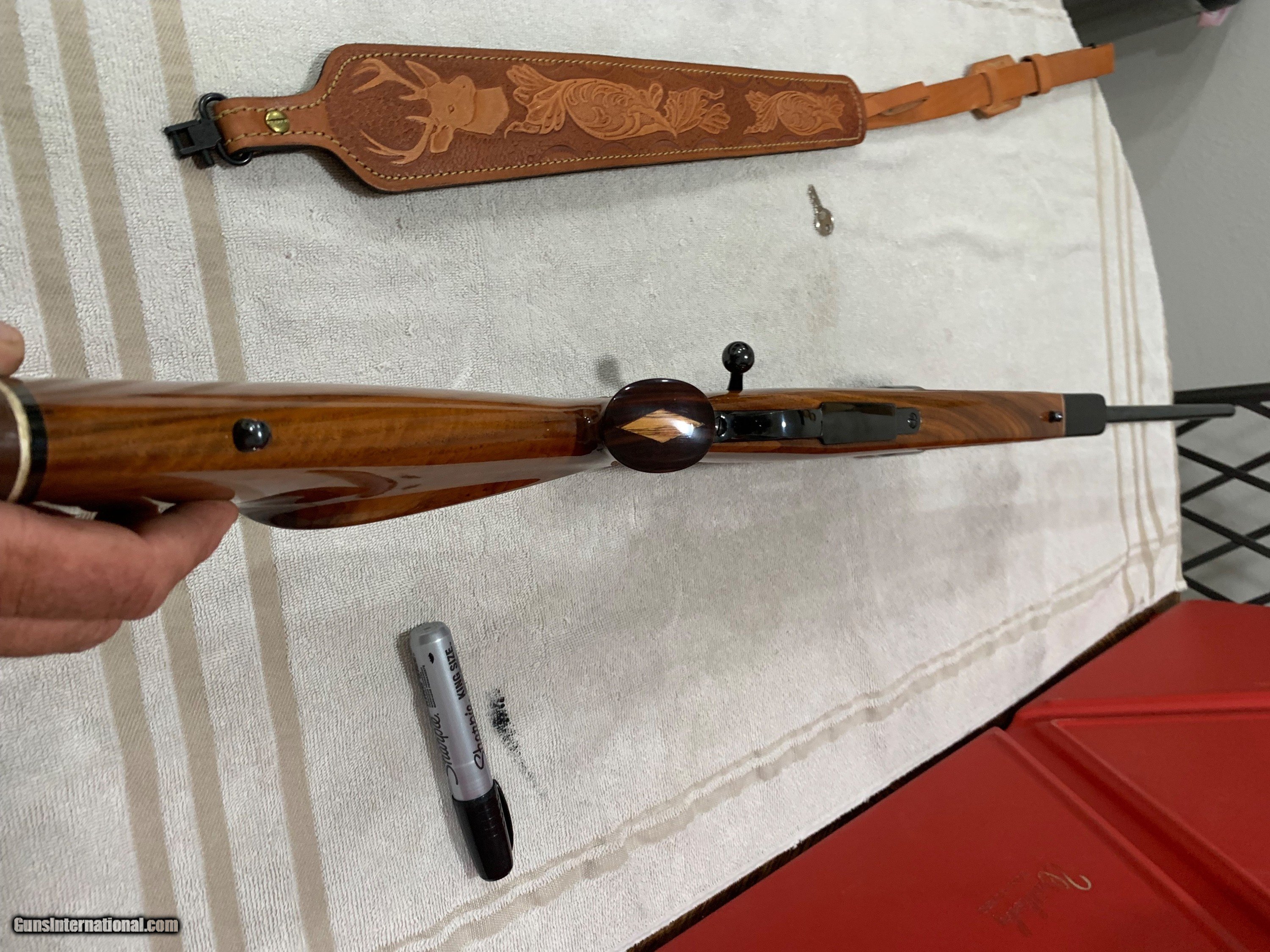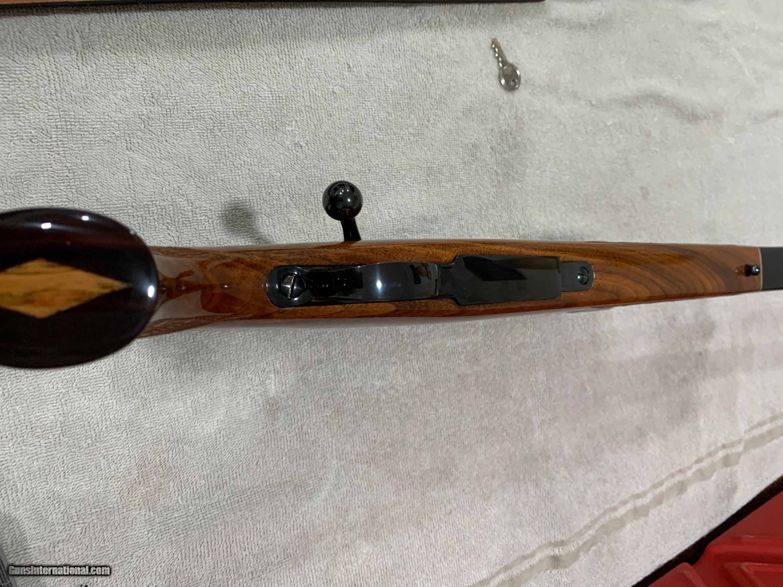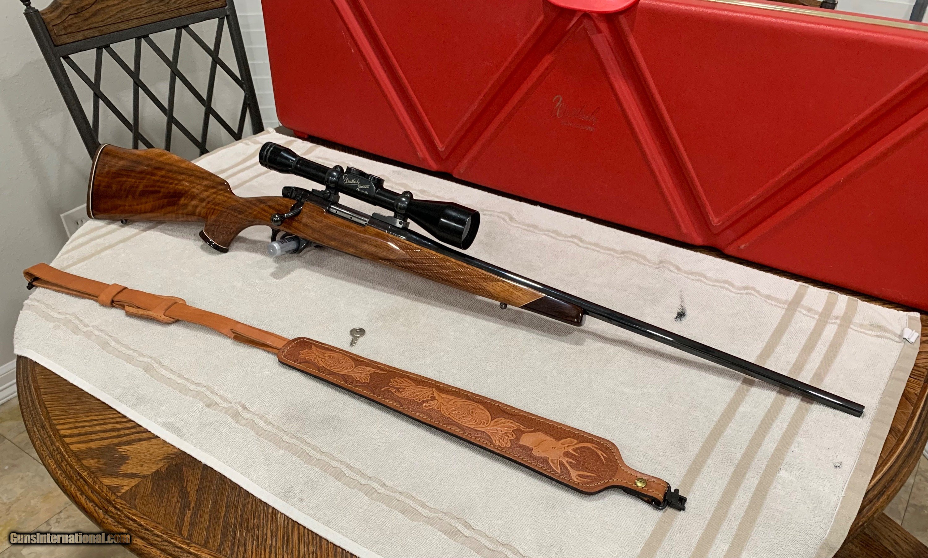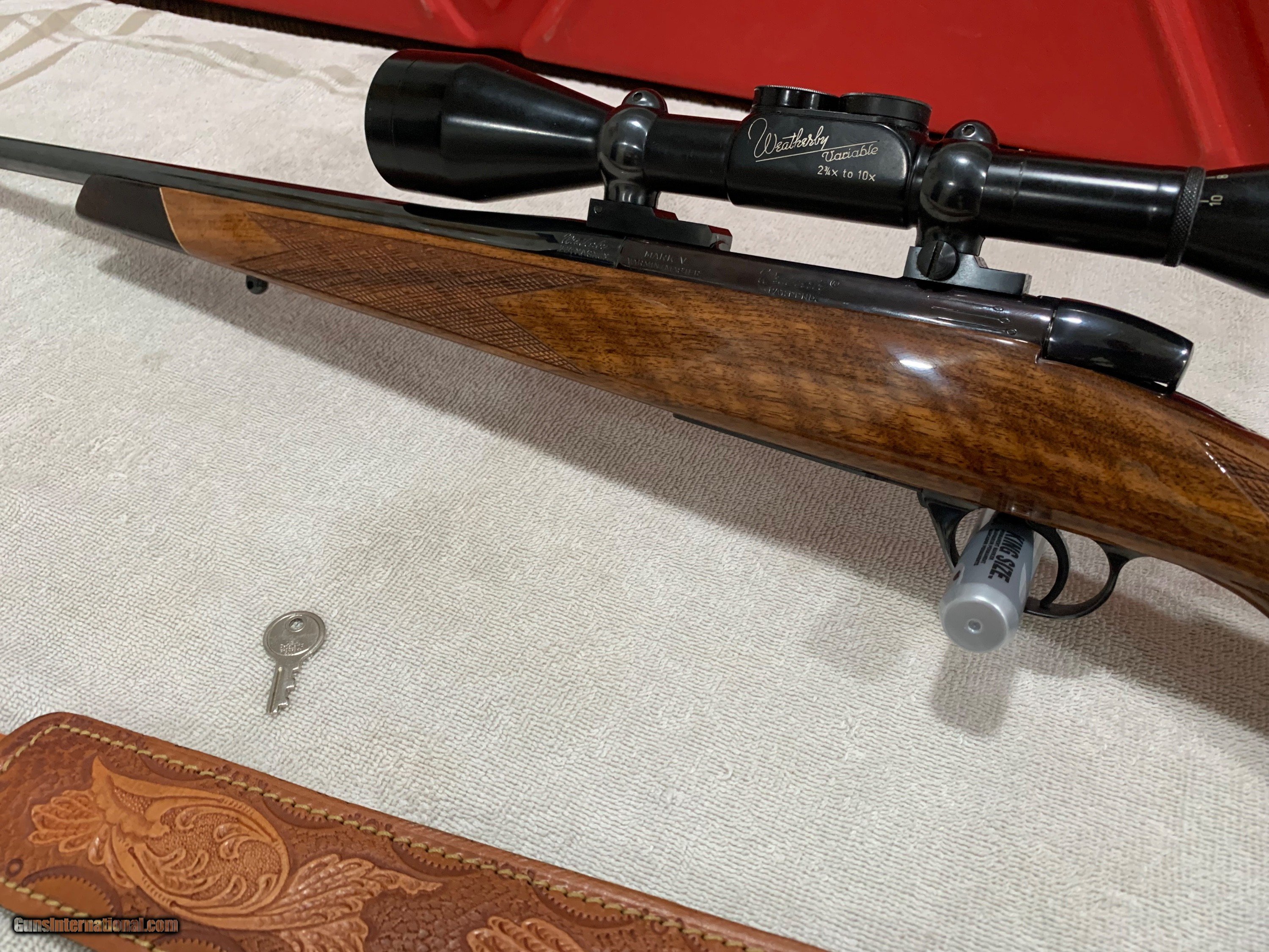 Description: Weatherby Mark V Varmintmaster 224 Weatherby Magnum, this is a very early and collectible Varmintmaster. Rifle is like from a time capsule, it is nearly perfect wood and blue, rifle is a 1963 model it was one of the very first 224's made as indicated by the Pre S serial number. Included with the rifle is Buehler rings and mounts with a Weatherby Imperial 23/4-10 scope, a hand tooled leather sling and Weatherby Gun-Guard hard case with key. Any questions please call or text. Insured shipping is $100 I prefer payment by USPS money orders but will except other forms of payment with a hold until it clears my bank. Rifle will have to ship to an FFL. No California sales. Thanks for looking, don't miss out on a highly collectible Weatherby rifle in excellent condition. SOLD Rifle Caliber: .224 Weatherby Magnum |