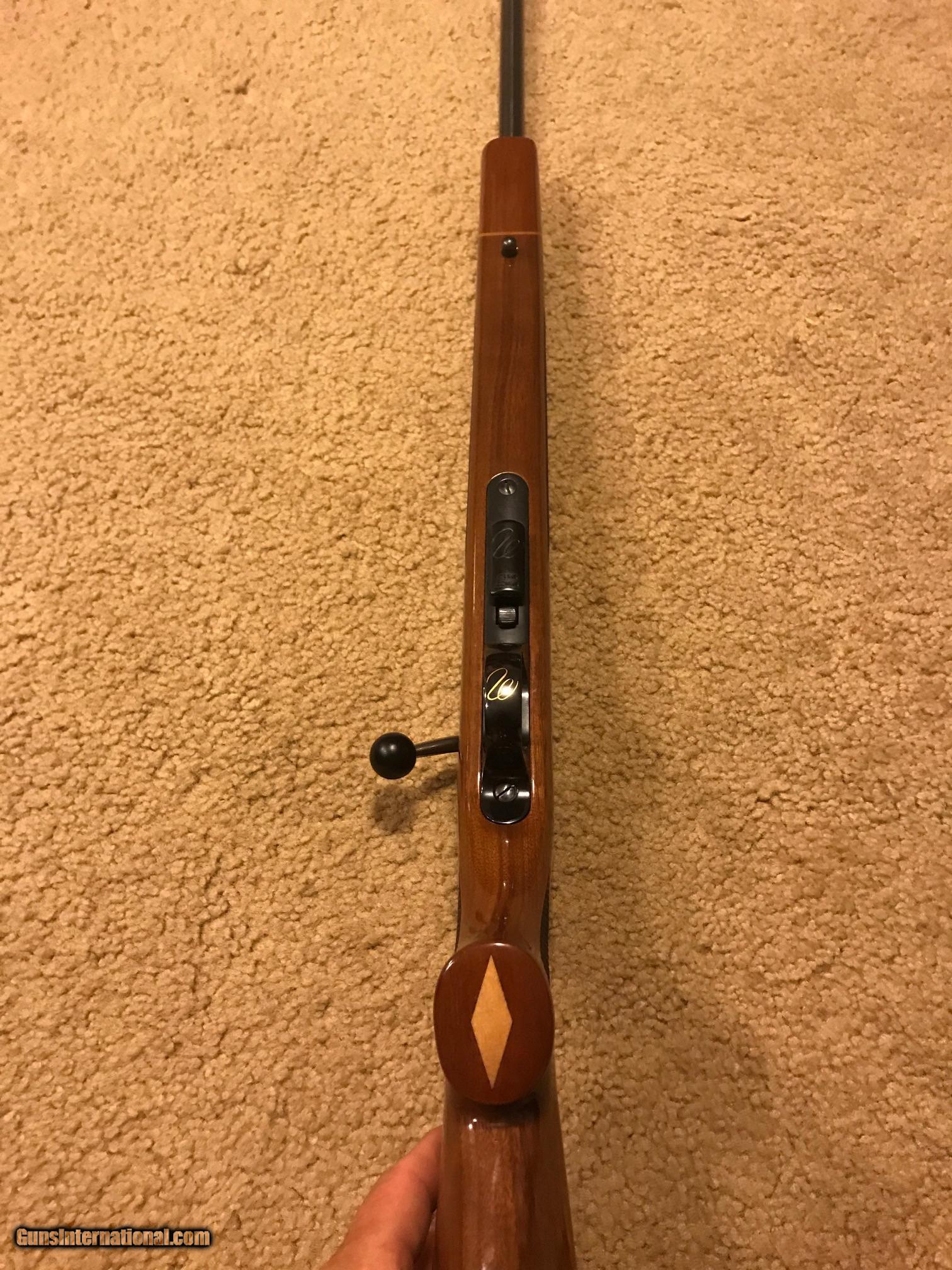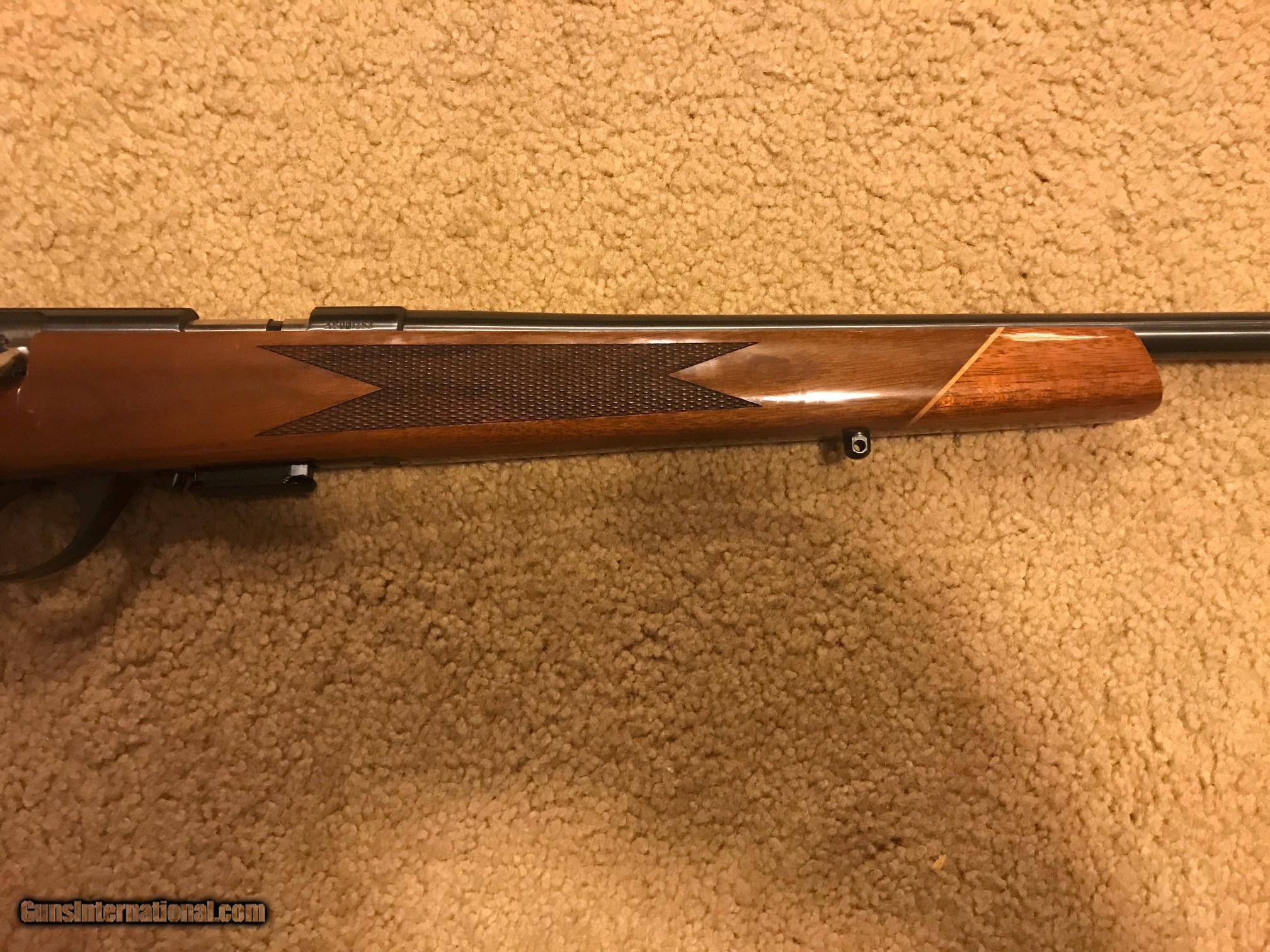 Description: NIB Weatherby Mark XXII Deluxe in 17HMR. Beautiful gun, and would make a fine addition to your Weatherby collection. Made in Germany. $1800.00 SOLD Manufacturer: Weatherby Model: Mark XXII Deluxe Caliber Info: 17 HMR Metal Condition: New Wood Condition: New Bore Condition: Unfired Barrel Type: 23 Action: Anschutz |