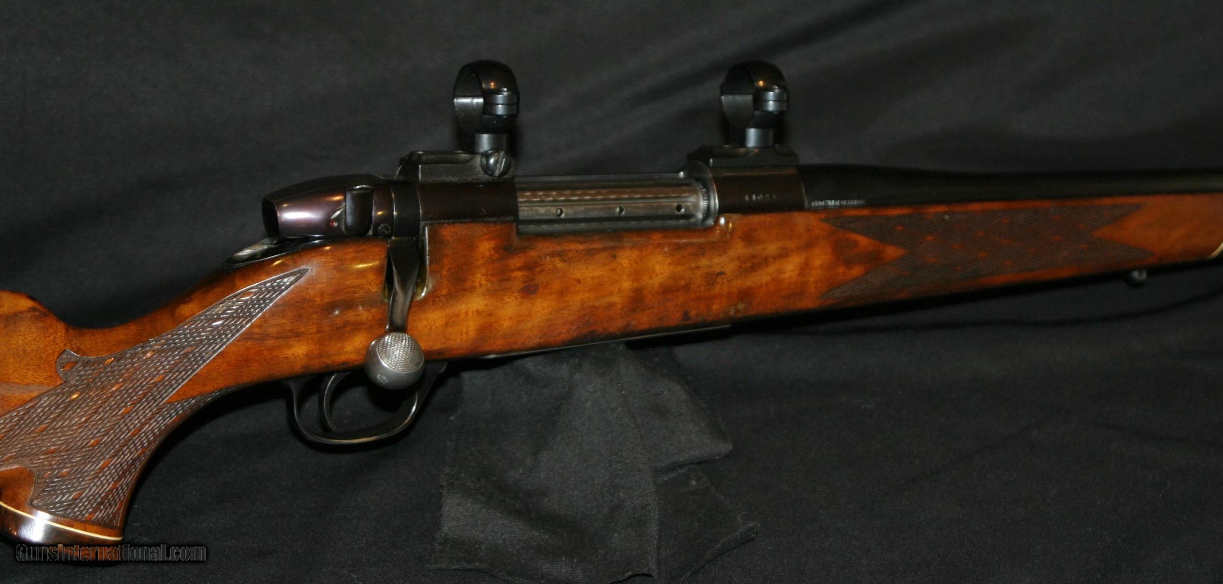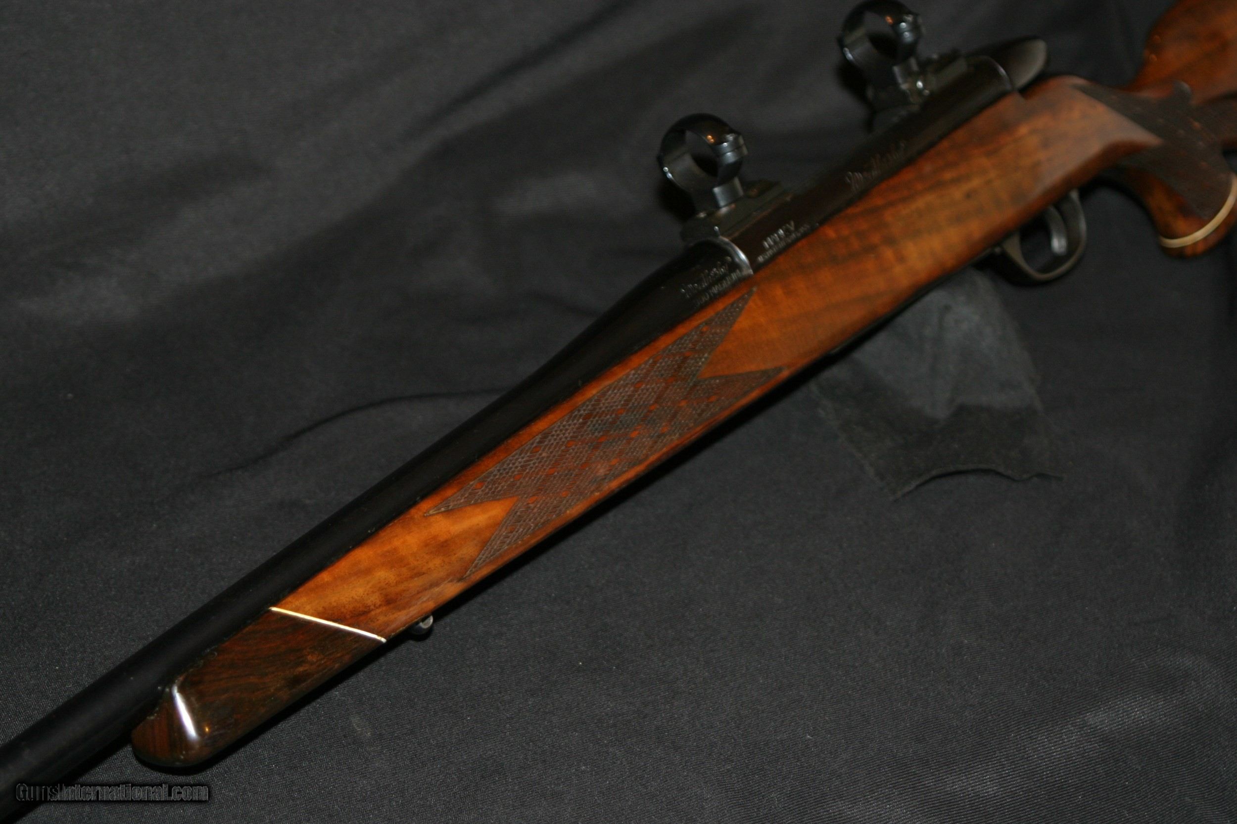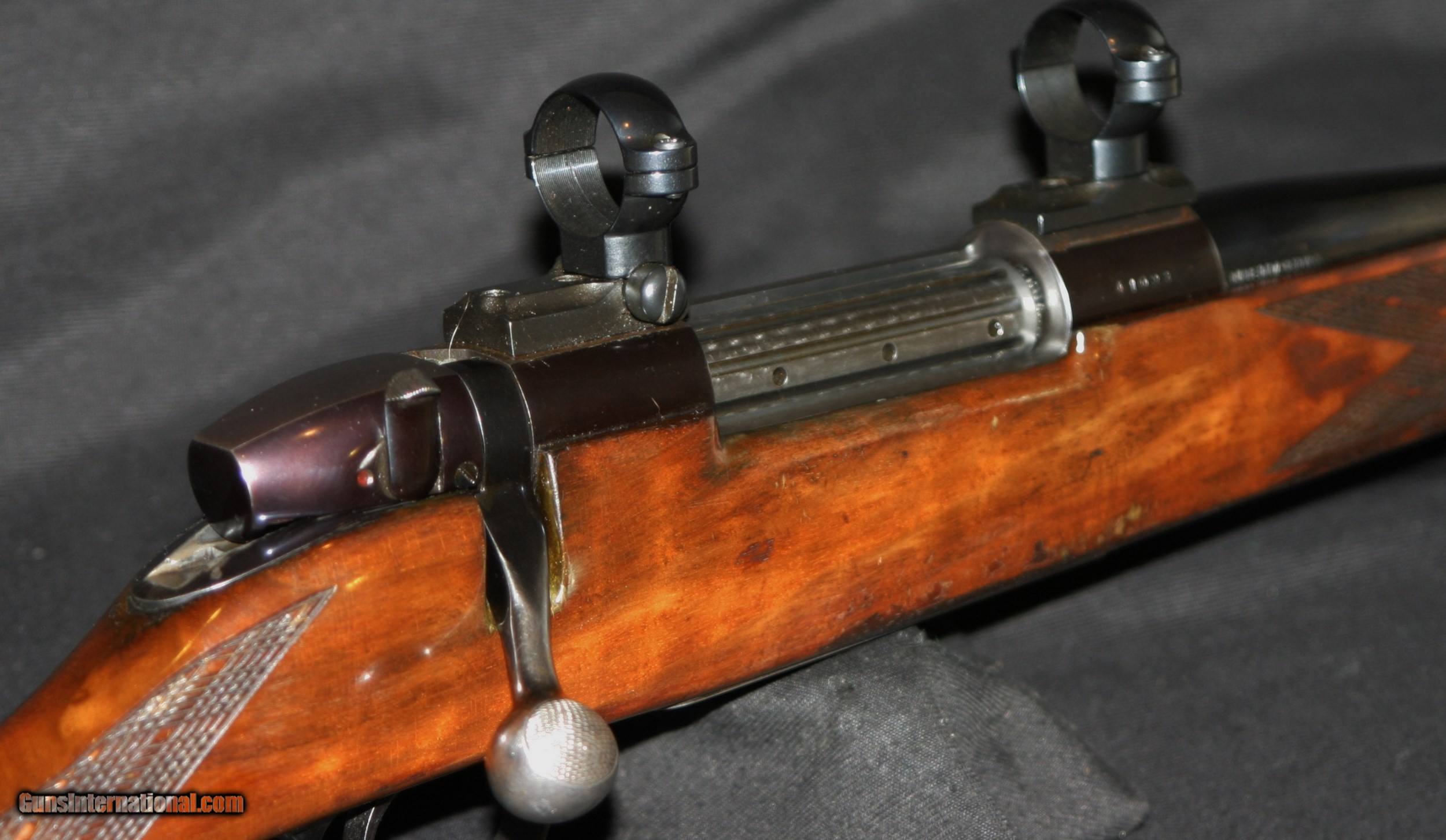 Description: A BIT OF FINISH IS GONE, BLUING IS WORN, BUT ITS STILL GOT A LIFETIME OF MEMORIES LEFT IN IT! EARLY WEST GERMAN IN .300 WEATHERBY MAGNUM. LIGHTWEIGHT #2 BARREL THAT IS 24" LONG AND CLEAN ! SOLD |