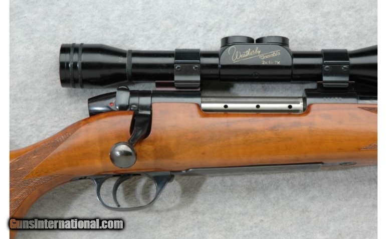 Description: SOLD Caliber Info: .300 Wby. Mag. Chambers: Hinged floorplate. Metal Condition: Good. Some light freckling, light handling marks and minor wear. Wood Condition: Very good. Bore Condition: Very good. Barrels: 24 inches. Stock: Checkered walnut pistol grip with a raised cheekpiece and rosewood cap. Stock Dimensions: LOP 13 3/8 inches. Fore End: Checkered walnut with a rosewood tip. Butt Pad: Weatherby rubber recoil pad. Weight: 8 lbs. 13 oz. with scope mounted. Sights: Weatherby Variable 2x to 7x Scope. Raised front blade. Folding adjustable middle. Item Location: Richfield, WI |