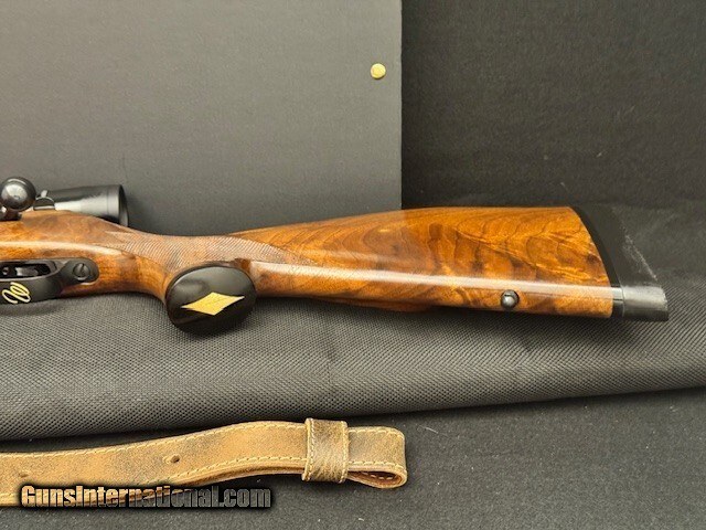 Description: A TRUE HEIRLOOM IN MINT CONDITION HAND MADE TURKISH WALNUT HAND ENGRAVED STOCK {NOT LASER } BLACK CERAKOTE ACTION ,SCOPE RINGS ARE GENUINE WEATHERBY CUSTOM SHOP SCROLLWORK GOLD & SILVER IT TOOK A YEAR IN WEATHERBYS CUSTOM SHOP FOR ED WEATHERBY TO BUILD THIS RIFLE. MADE IN USA IS IN RED WHITE AND BLUE WEATHERBY IS FILLED IN GOLD. OPTICS VARI X 3.5X 10 LOP IS 13.5" YOU WANT FIND ANOTHER LEFT HANDED COLLECTORS RIFLE IN THIS CONDITION ALSO COMES WITH WEATHERBY CASE AND SLING. Rifle Caliber: .300 Weatherby Magnum Manufacturer: WEATHERBY Model: MARK V Serial Number: PB041109 Barrel Length: 26 28 wth brake Chambers: 300 WBY MAG Condition: EXCELLENT Metal Condition: EXCELLENT Wood Condition: EXCELLENT Bore Condition: EXCELLENT Action: BOLT 9 LUG Optic: LEUPOLD 3.5X10 Price: $2,995.00 Shipping: $65.00 Contact Seller |