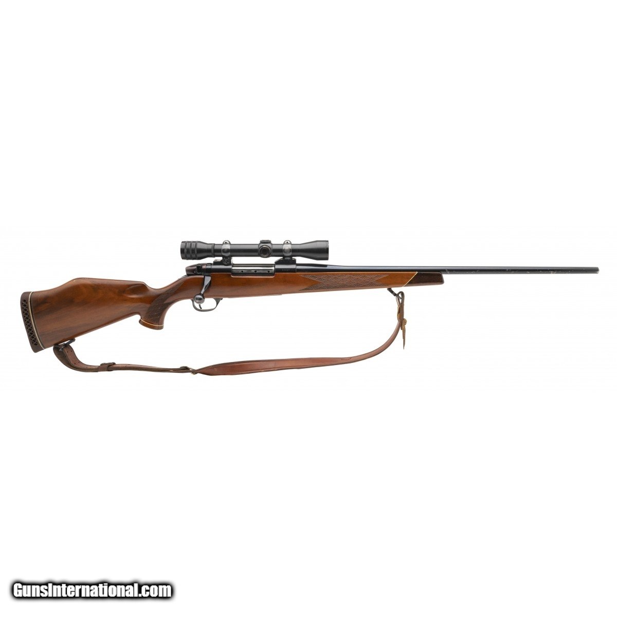 SN: 36927. Made Circa 1959-1973 in west Germany. Bolt-action rifle chambered in .270 Weatherby Magnum with a 24"" barrel. Bore condition is excellent. Barrel exterior condition is good with some of its bluing flaked off the right side. Receiver condition is very good with some handling marks. Wood condition is very good with light handling marks and functional checkering still remaining. Comes with a Kollmorgan Bearcub 4X scope and sling mounted.