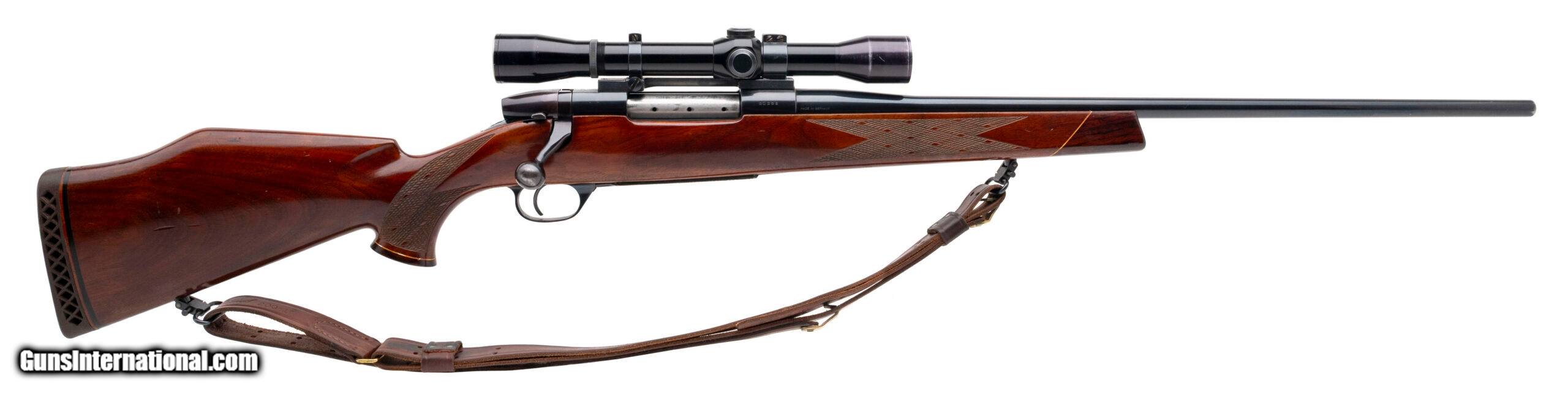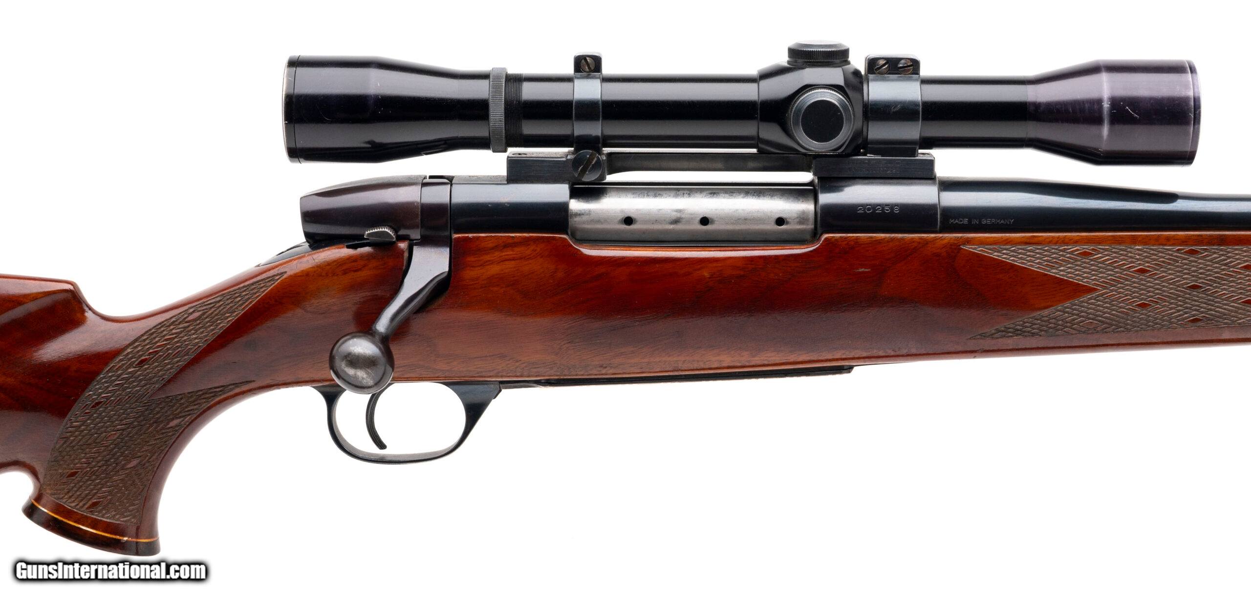 Description: "SN: 20258 made in Germany circa 1960’s. Bolt action hunting rifle chambered in 300 Magnum with a 24" round barrel and a custom laser engraved bottom metal. Checkered walnut stock with forend tip, grip cap and original recoil pad. Some light wear and handling marks but overall in very good condition with an excellent bore. Comes with Lyman All American scope and leather sling. Price: $995.00 Contact Seller |