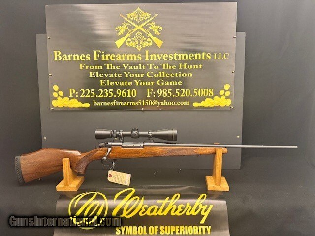 Description: ***EXCELLENT CONDITION *** WEATHERBY MARK V 30 06 WITH LEUPOLD 3X9 SCOPE STRON RIFLING AND CRISP CLEAR OPTICS THE OPEN SIGHTS HAVE BEEN REMOVED FOR THE SCOPE AND PLUGGED WITH FACTORY BRASS PLUG SCREWS THIS WILL MAKE AN EXCELLENT HUNTING RIFLE OR A GREAT ADDITION TO YOUR COLLECTION THESE MARK V DELUXE RIFLES ARE NO LONGER IN PRODUTION LIGHT HANDLING MARKS PLEASE SEE PICS. Rifle Caliber: .30-06 Springfield Manufacturer: WEATHERBY Model: MARK V Serial Number: H260336 Barrel Length: 22 Bore Info: strong Chambers: 30 06 SPRINGFIELD Condition: VERY GOOD Metal Condition: VERY GOOD Wood Condition: EXCELLENT Bore Condition: EXCELLENT Action: BOLT 9 LUG Stock: WALNUT Optic: LEUPOLD 3X9 Price: $1,649.00 Shipping: $75.00 Contact Seller |