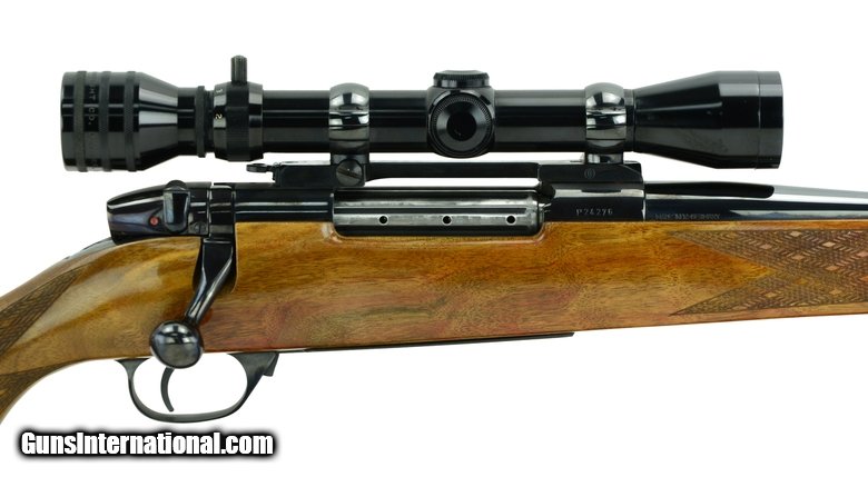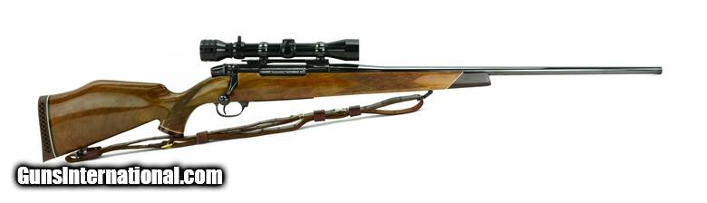 Description: Weatherby Mark V 300 Magnum caliber rifle. W. German made deluxe model with 2-7x scope. Excellent overall condition.