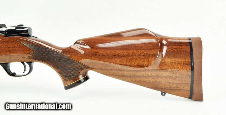 Description: Weatherby Mark V 300 WBY Magnum caliber rifle. U.S. made deluxe model in excellent condition with scope rings.
