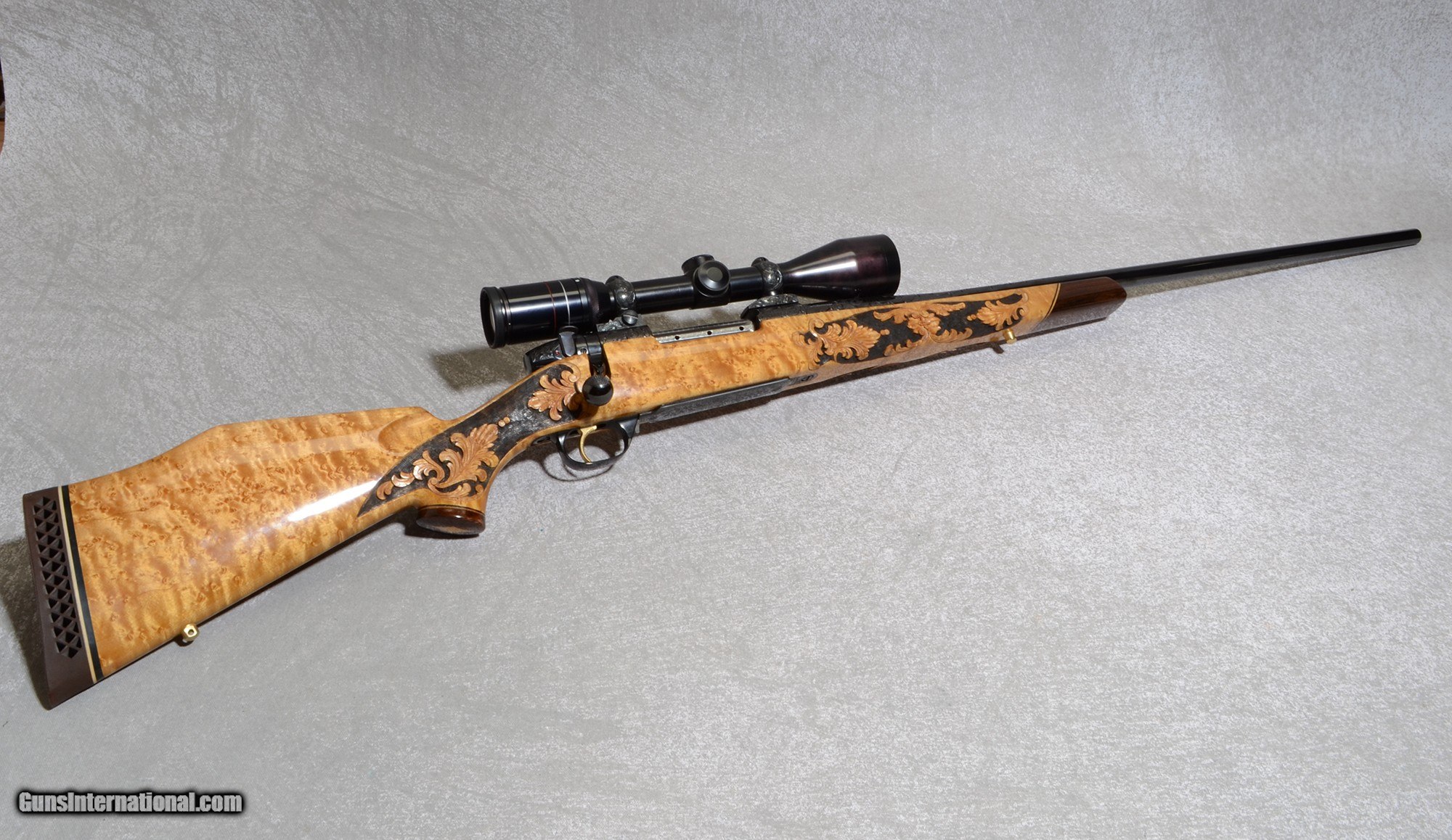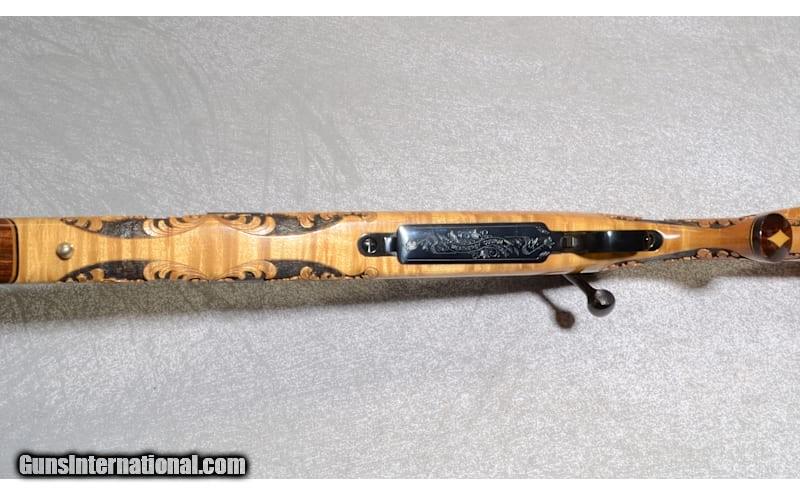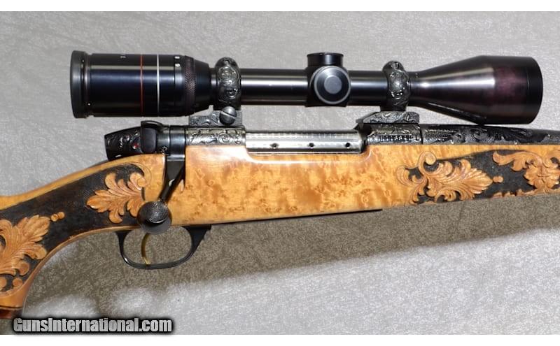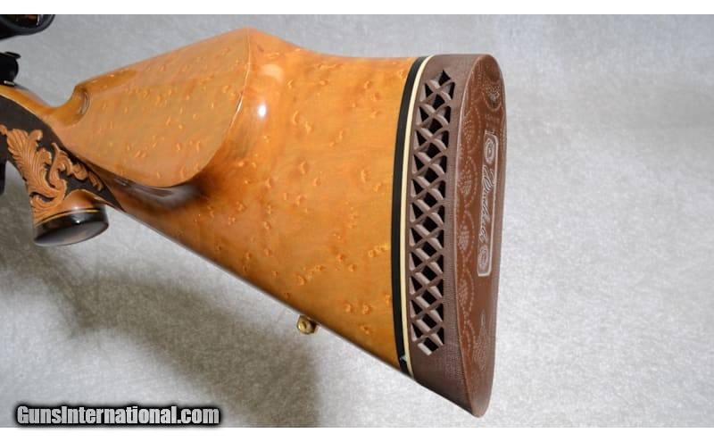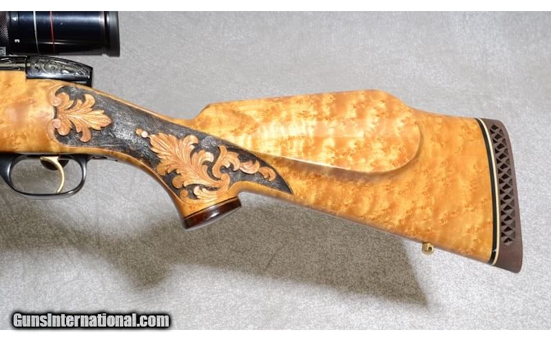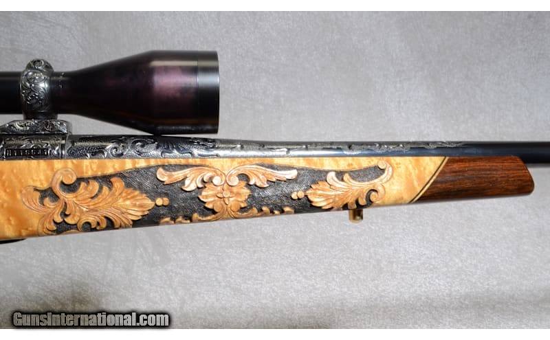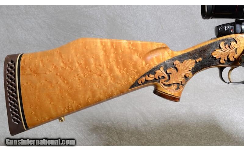 Description: The Weatherby Mark V in .300 Weatherby Magnum is a high-quality rifle known for its exceptional craftsmanship and performance. It features a Crown Grade Custom hand carved stock, which is a high-grade claro burlwood stock with a polished blued finish, providing durability and aesthetics. Comes with a rosewood fore cap on forend and grip. Fully engraved barrel and scope mounts with a jeweled 9 lug bolt. The rifle is chambered for the .300 Weatherby Magnum, known for its powerful performance, making it suitable for hunting larger game. Manufactured in Japan .300 Weatherby Magnum Chambers: Bolt Metal Condition: Fully Engraved Barrel and Scope Mounts in Excellent Condition Wood Condition: Hand Carved Claro Burlwood Stock in Excellent Condition Bore Condition: Excellent Condition Barrels: 26 Inch Barrel Triggers: Factory Stock Dimensions: 13 5/8 Inch LOP Fore End: Rosewood Cap Butt Pad: Vented Recoil Pad Weight: 10 Lbs Sights: Supreme 3-9 X 44mm Scope Item Location: Tulalip, WA Price: $6,999.99 Contact Seller |