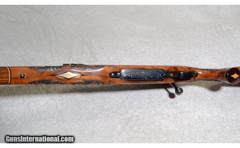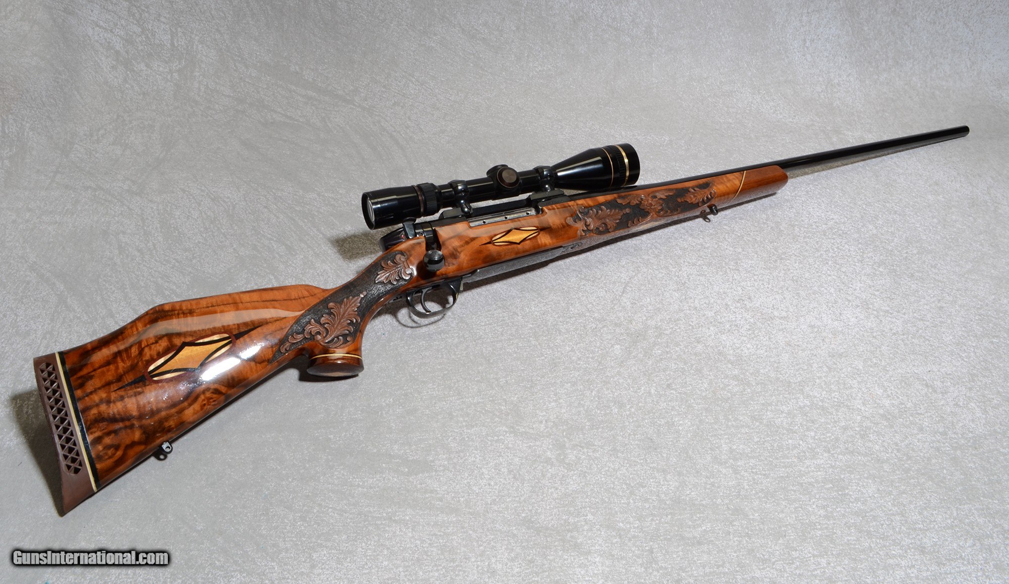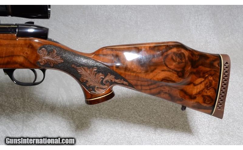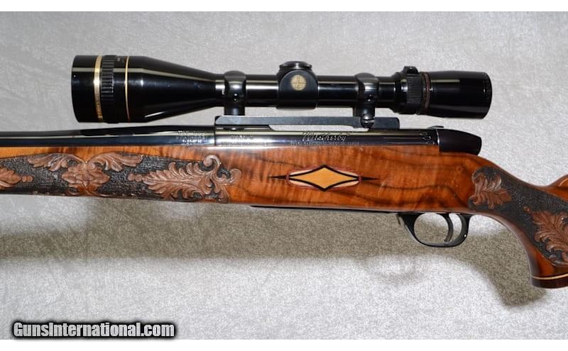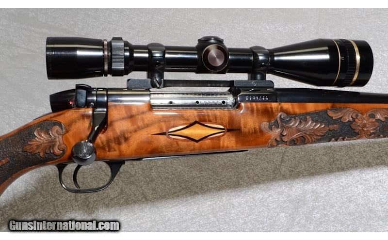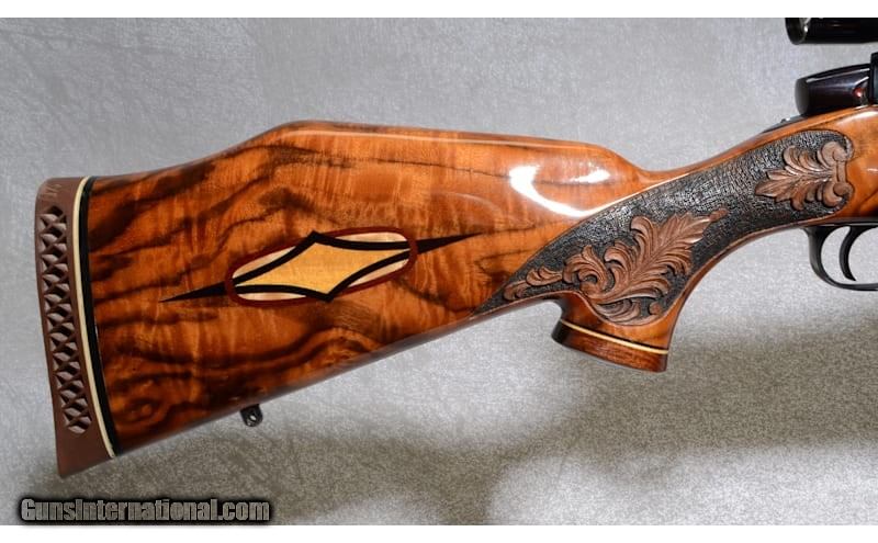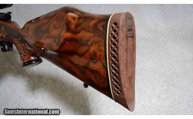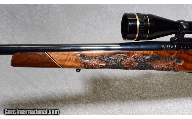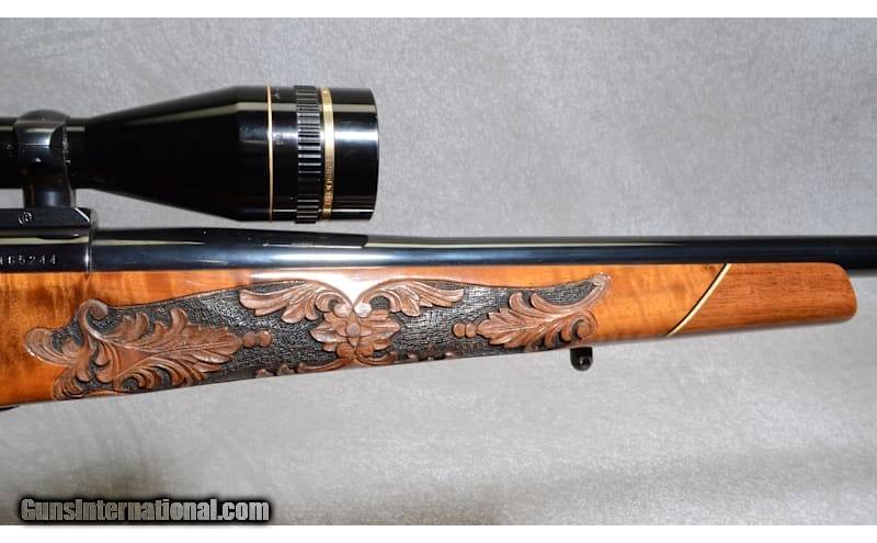 Description: The Weatherby Mark V is a renowned bolt-action rifle known for its exceptional performance and craftsmanship. The .240 Weatherby Magnum is a proprietary cartridge designed for this rifle, offering a powerful and fast-killing medium game cartridge. The .240 Weatherby Magnum is the fastest commercially available 6mm cartridge, utilizing the .30-06 case design. This Custom Grade Mark V features a hand carved burlwood stock with incredible inlay, a rosewood cap on forend and grip with a 9 lug bolt providing durability and aesthetics. Manufactured in Japan. .240 Weatherby Magnum SOLD Chambers: Bolt Action Metal Condition: Excellent Condition Wood Condition: Hand Carved Inlaid Burlwood Stock in Excellent Condition Bore Condition: Excellent Condition Barrels: 26 Inch Barrel Triggers: Factory Stock Dimensions: 13 3/8 inch LOP Fore End: Rosewood Cap Butt Pad: Vented Rubber Recoil Pad Weight: 10 1/4 lbs Sights: Leupold 3.5-10 X 40mm Vari-X III Item Location: Tulalip, WA |