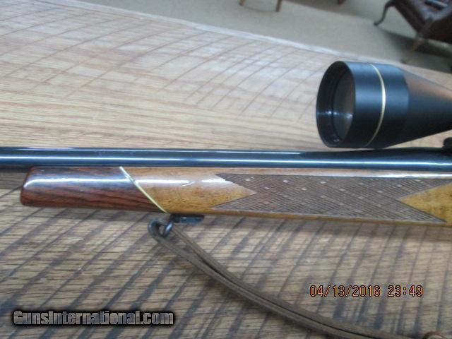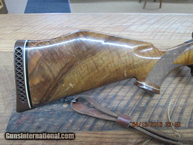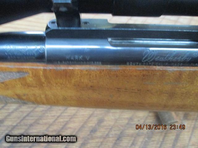 Description: WEATHERBY (1972) MARK V DELUXE RIFLE 300 WEATHERBY CAL. VX11. LEUPOLD 3X9X50. 24”BARREL WITH LIKE NEW BORE AND OPEN SIGHTS. DELUXE CHECKERED FIGURED WALNUT STOCK WITH HANDLING MARKS PRESENT AND FACTORY PAD. 95% ORIGINAL METAL BLUE WITH SOME HANDLING MARKS. QUICK DETACHABLE SLING SWIVELS WITH LEATHER SLING. HAS MOUNTED LIKE NEW LEUPOLD 3X9X50 DUPLEX RETICLE SCOPE IN REDFIELD RINGS & BASES. GUN WAS CARRIED, BUT NOT SHOT MUCH. COST 1059.00 + 40.00 SHIPPING. NO CREDIT CARDS, CHECKS TAKE 10 DAYS TO CLEAR AND MONEY ORDERS TAKE 5. CALL DANNY 828-698-8804 WITH ANY QUESTIONS. THANK YOU AND GOD BLESS. SOLD Manufacturer: WEATHERBY Model: MARK V DELUXE Caliber Info: 300 WEA |