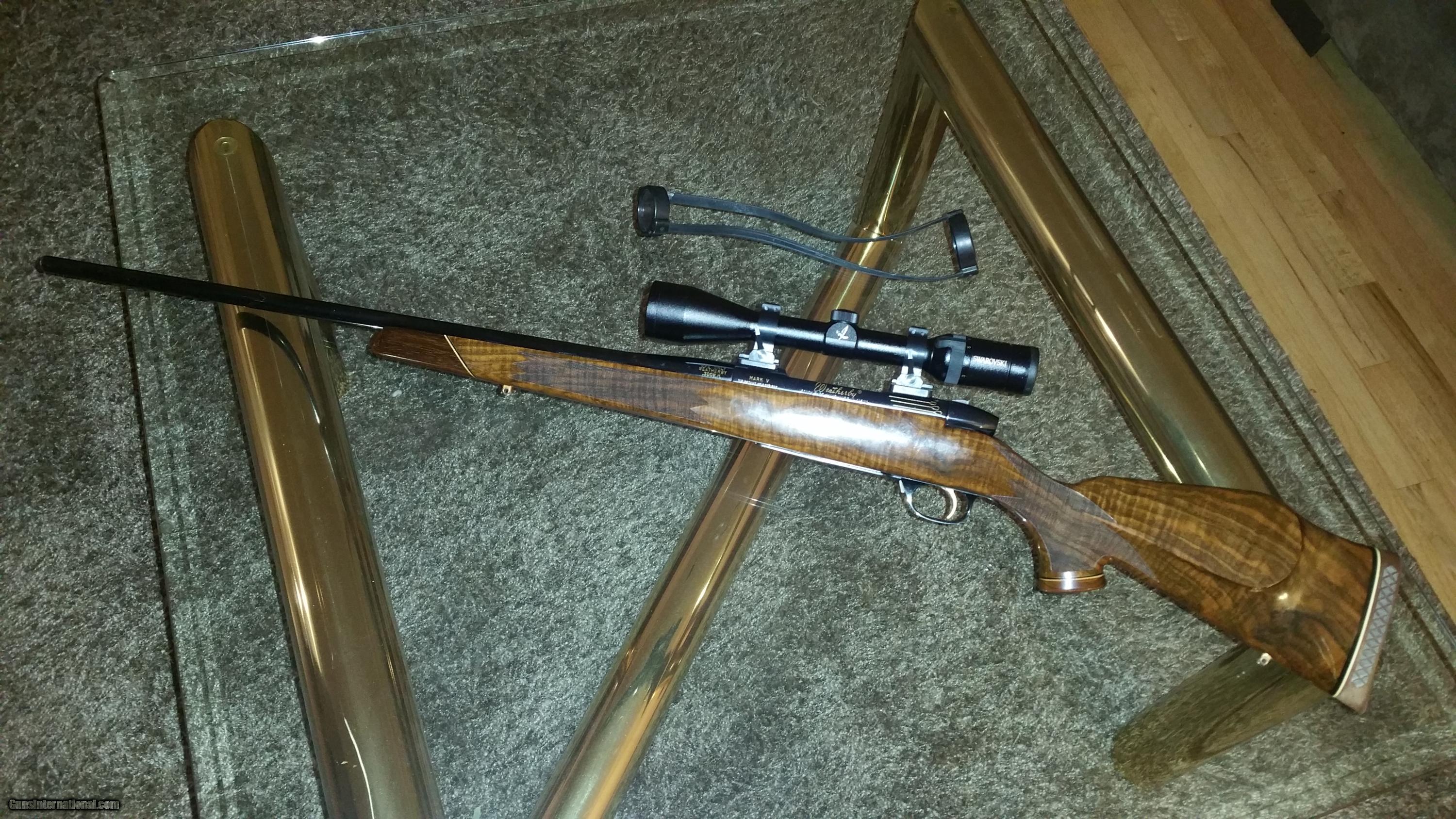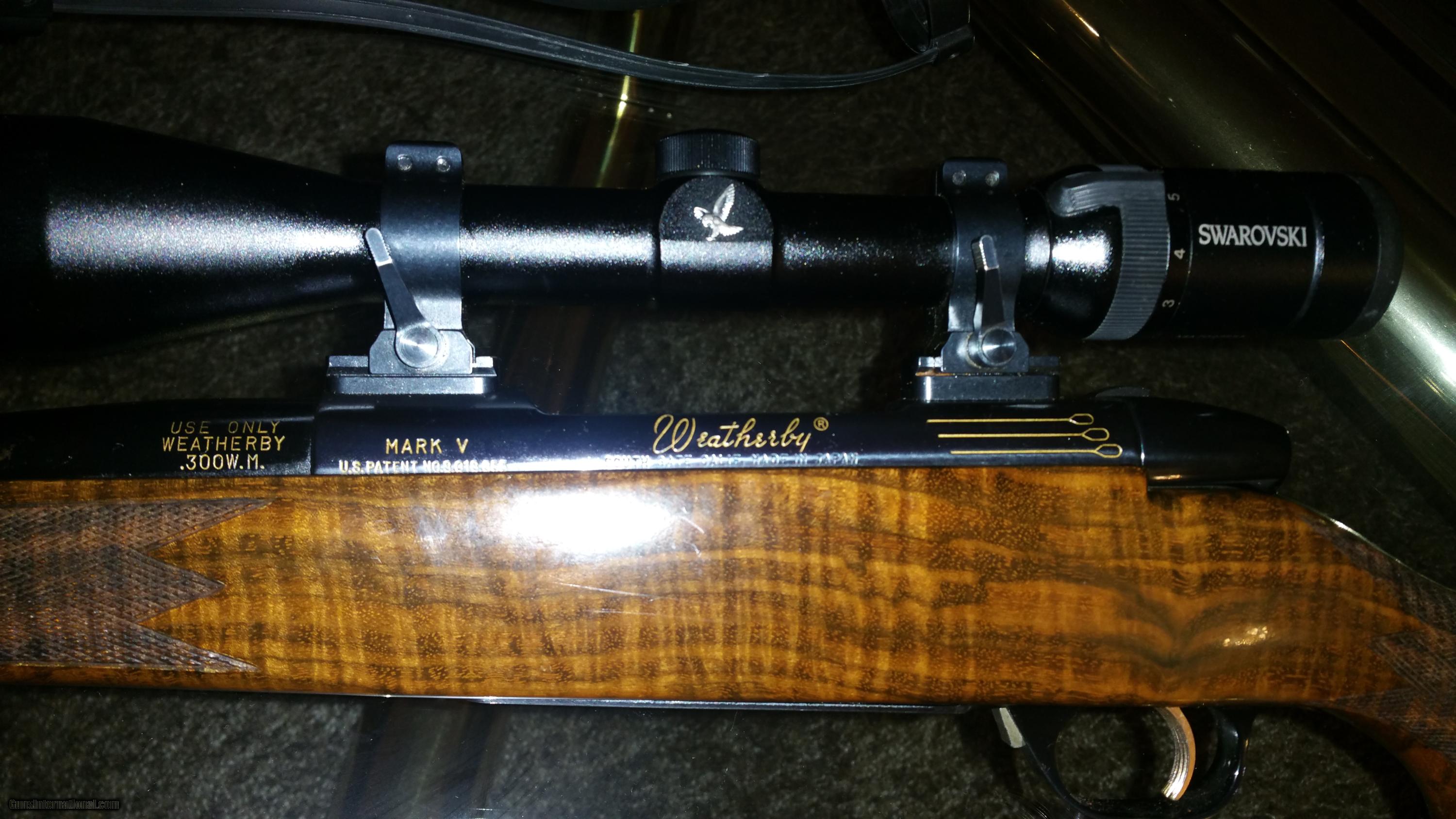 Description: Weatherby Mark V - .300 Weatherby magnum. 1 out of 1000 made, 24" barrel, made in japan. The rifle is topped with a Swarovski 3-10x42 Habic A scope in talley Q.D. scope mounts. The scope was sighted in at the range at 1" high at 100 yards with a 180gr corelocked Remington ammo. The rifle has some hanging marks but it is in perfect condition. No cracks or major dents. The barrel is shiny inside, the rifle is in good working condition and field ready. Would also make a good addition to a collector. This rifle will be sold with or without the scope and rings. (Scope and rings $500) Reasonable offers considered SOLD Caliber Info: .300 weatherby magnum |