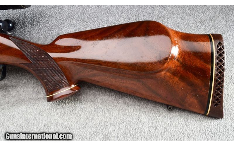 Description: The Weatherby Mark V manufactured in Japan was between the years of 1972-1994. This is a Push-Feed action gun that has been used for sure! Gun has some light use marks and scratches but remains solid showing some finish loss on both sides of buttstock. Claro Walnut shows beautiful patterning under finish. Blue is very good as well showing some blue loss on bolt, floor-plate and trigger-guard. Gun is complete with a Redfield Wideview 3x-9x scope with Accu-Range reticle. Nice old classic that is the perfect project gun! .300 Weatherby Magnum SOLD Metal Condition: Very Good Wood Condition: Very Good Bore Condition: Excellent Barrels: 24 Triggers: Factory Stock Dimensions: 13 1/2" LOP Fore End: Double Skip Line Checkered Walnut with Rosewood Pistol Grip Cap and Monte Carlo Cheek-Piece - Double Skip Line Checkered Forend with Rosewood Forend Cap Butt Pad: Weatherby Brown Vented Rubber Butt Pad Weight: 8 3/4 LBS. Sights: Redfield 3x-9x Widefield with Accu-Range Reticle Item Location: Wheeling |