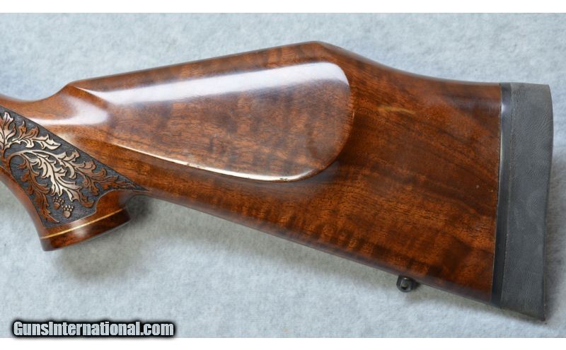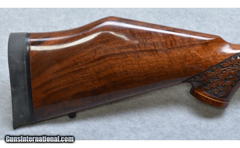 Description: SOLD Manufacturer: SN#: SB081274 Caliber Info: 416 Wby Mag Metal Condition: Excellent Wood Condition: Very Good with Some Minor Scratches Bore Condition: Bright And Shiny With Crisp Rifling. Barrels: 28" with Muzzle Brake Triggers: Grooved Stock: Engraved Pistol Grip Monte Carlo Stock Dimensions: 13 1/2" LOP Fore End: Engraved with Rosewood Tip Butt Pad: Limbsaver Rubber Weight: 9 lbs. 2 oz. Sights: No Sights, with Scope Base and Rings Item Location: Hazelwood, MO |