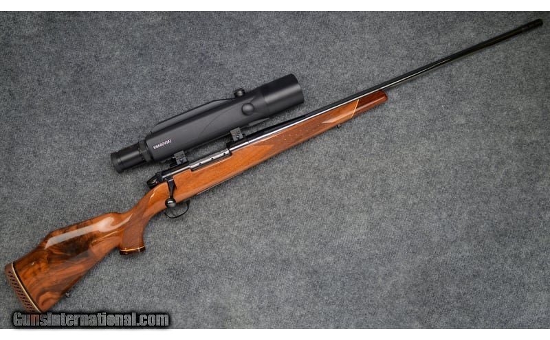 Description: For your consideration, a Weatherby Mark ? chambered in .340 Weatherby Magnum. The receiver is topped with a Swarovski LRS 3-12x50 laser range finding scope. Scope has been function checked, but does not include the 4x AAA batteries necessary to function. .340 Weatherby Magnum SOLD Metal Condition: Very Good+ Wood Condition: Excellent Bore Condition: Very Good+ Barrels: 26 Triggers: Serrated Stock Dimensions: 13.25" LOP Fore End: Checkered Butt Pad: Rubber Weight: 10.75 Lbs Sights: Swarovski Scope Item Location: Hamburg, PA |