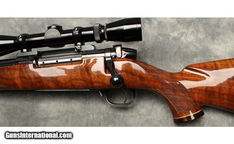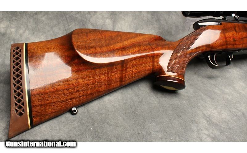 Description: Roy Weatherby's master peace, the Mark V Deluxe, chambered in the powerful .378 Weatherby Magnum. A rifle for the serious big game hunter. Made in 1989. Left-hand action for the southpaw, it will bring a smile to your face just to hold it. The legendary, nine lug bolt. Built like a Howitzer for the super high pressures of the .378 WM. The AA Select Walnut stock with Rosewood forend, brings the warmth and glow of masterfully carved wood to life. This is heirloom quality, use it now, and pass it on to the next generation of hunters, and keep tradition alive. This rifle is used and it does show some minor wear, a little dent here and there in the wood. Metal is 99% No rust, pits, or fade. .378 Weatherby Magnum SOLD Chambers: .378 Weatherby Magnum Metal Condition: 99% Deep Blue Wood Condition: 97% Minor dents and slight abrasions. Bore Condition: Clean and bright Barrels: "26 inch (0.66 m), plus compensator, 1 in 12 twist. Triggers: 3.5 lbs Stock Dimensions: "13.5"" LOP, 7/8"" DTC, 1 5/8"" DTH Fore End: Standard Butt Pad: Original Weatherby Weight: 9 lb Sights: Leupold VX-IIc 3×9 Item Location: Katy, TX |