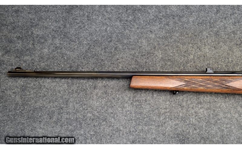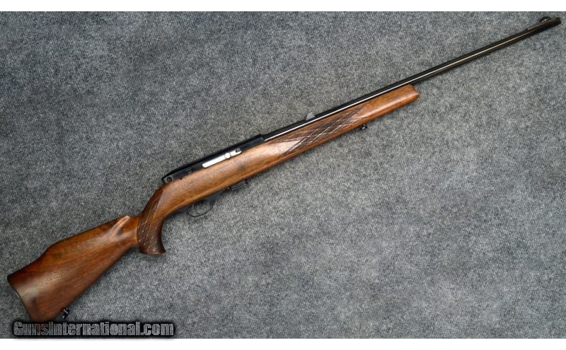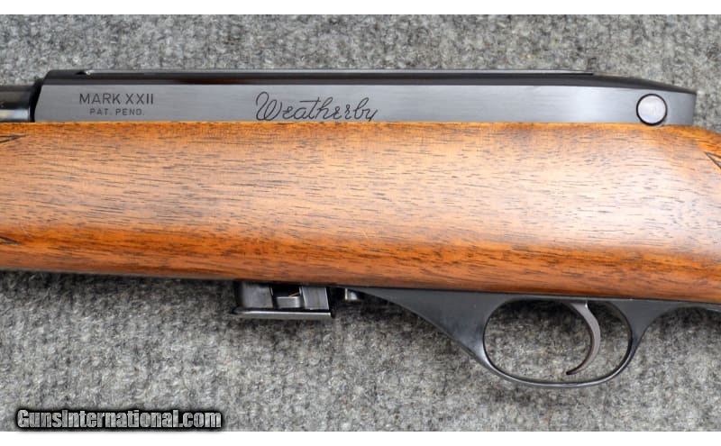 Description: For your consideration, a Weatherby Mark ??? chambered in .22 Long Rifle. The rear sight has two folding leaves graduated for 75 and 100 yards while the receiver is topped with 11mm dovetail for the mounting optics. Features include last round bolt hold open, a jeweled bolt, and a tang-mounted safety. This piece is of Italian manufacture. .22 Long Rifle SOLD Metal Condition: Very Good+ Wood Condition: Excellent Bore Condition: Excellent Barrels: 24 Triggers: Serrated Face Stock Dimensions: 13.5" LOP Fore End: Checkered Butt Pad: Checkered Steel Weight: 6.25 lbs Sights: Iron Sights Item Location: Hamburg, PA |