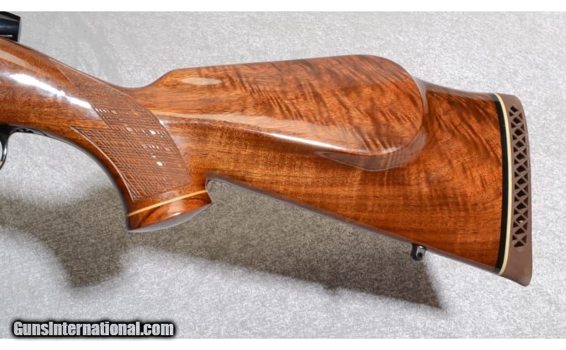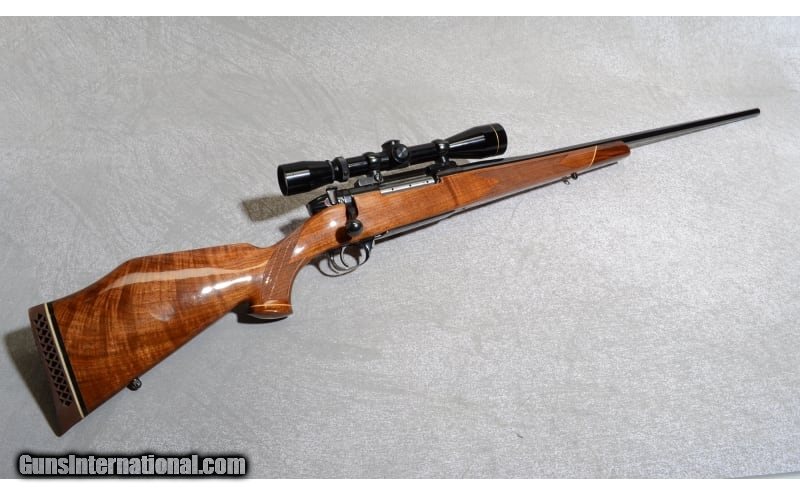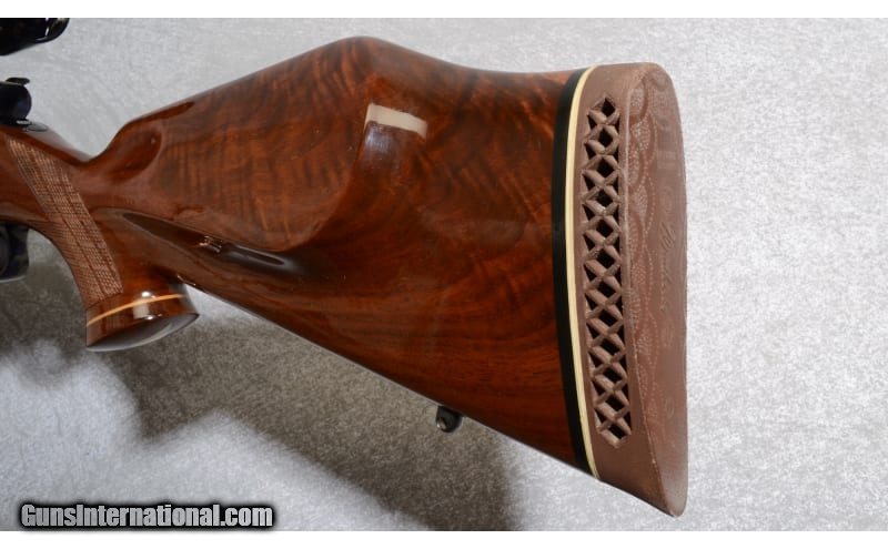 Description: This is a beautiful big game rifle that was mad in Japan for Weatherby. It features the 9 lug Weatherby bolt and the stock is a beautiful deeply featured fine walnut with a high polished finish. The gun is in 99% condition and would make a great addition to any serious collectors safe. .240 Weatherby Magnum SOLD Chambers: Bolt Action Metal Condition: Excellent High Polished Blued Wood Condition: Highly Featured Fine Walnut with High Gloss Finish Bore Condition: Excellent Bright and Shiny Barrels: 26" High Polished Blued finish Triggers: Factory Trigger Stock Dimensions: 13 3/8" LOP Monte Carlo Stock Fore End: Skip Checkered Fine Walnut With Rosewood Fore Cap Weight: 10.5 lbs. Sights: Leupold VX-1 30-9 x 40 Scope Item Location: Tulalip, WA |
