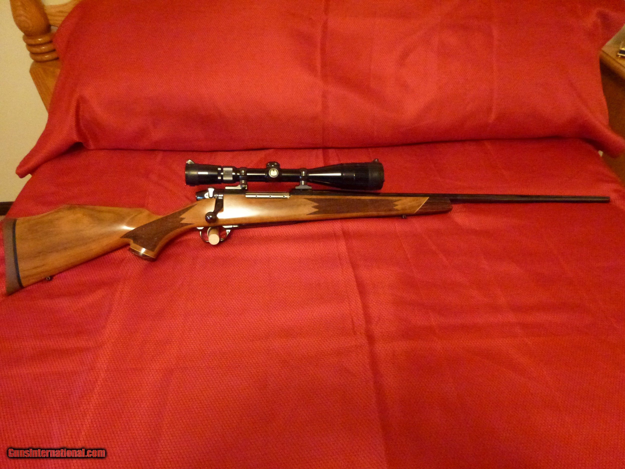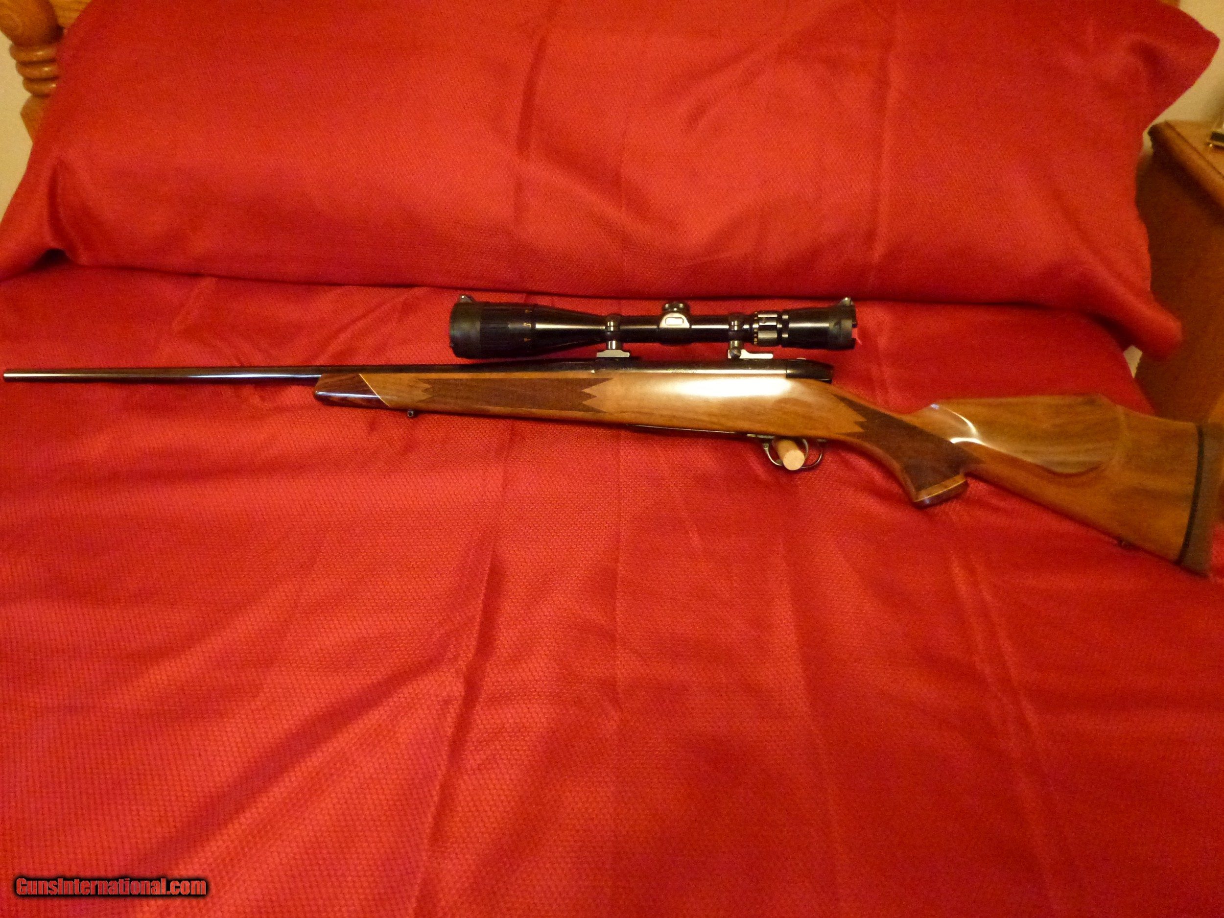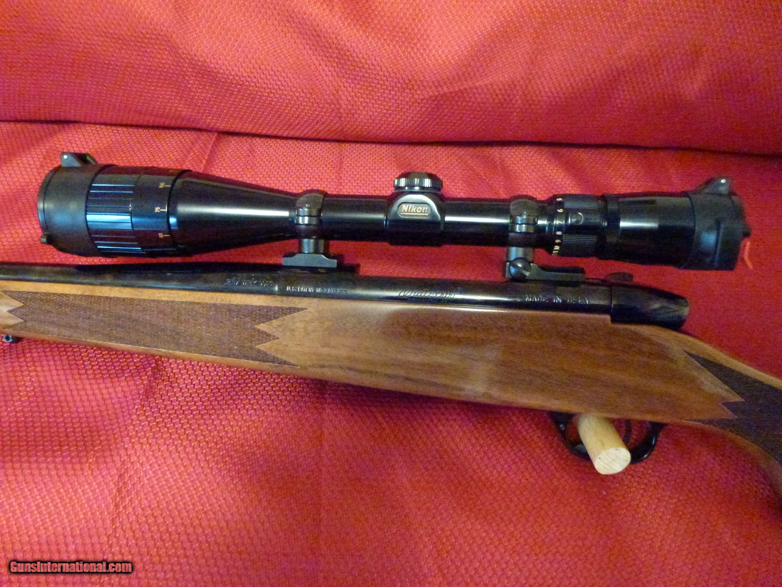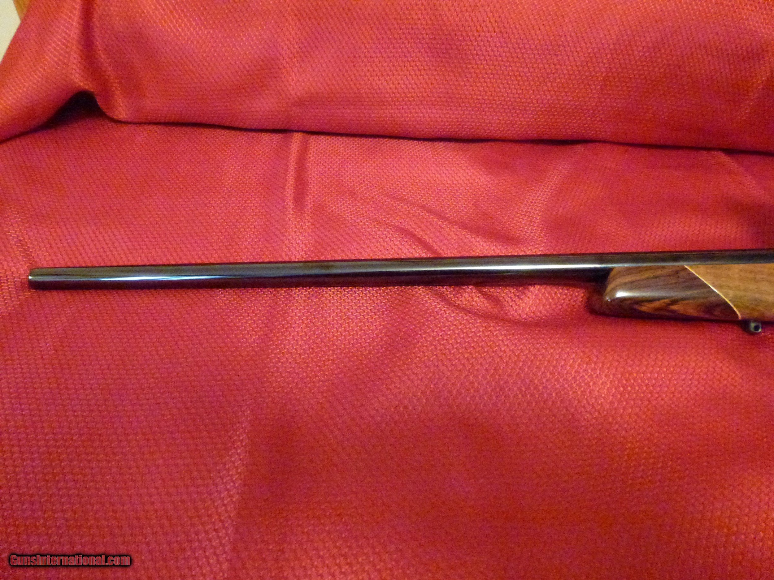Description: This is a beautiful Weatherby Mark V bolt action rifle in the popular .257 WBY MAG caliber. The rifle has a Nikon Monarch UCC 4-12X scope in Leupold mounts with Butler Creek scope covers. There are a couple of finish nicks in th grip cap and a 3/4 inch by 1/8 inch compression mark on the right side of the forearm just above the front end of the checkering. The rest of the gun looks as it did when it left the factory. The receiver is marked MARK V Weatherby ATASCADERA, CA. MADE IN U.S.A. The rifle has a 26 inch barrel and a 1 in 10 inch twist so it will stabilize the heavier bullets. Please e-mail any questions that you may have as NO RETURNS ARE ALLOWED. I will pay to ship and insure this item to your FFL. SOLD Rifle Caliber: .257 Weatherby Magnum Manufacturer: Weatherby Model: Mark V Serial Number: SB060584 Barrel Length: 26 Bore: 10 twist Condition: Excellent Metal Condition: 99% Wood Condition: 98% Bore Condition: Excellent Barrels: 26 inch Action: Bolt Rifle Stock: Checkered Gloss Walnut Fore End: Rosewood Butt Pad: Weatherby LOP: 13.5 inches Finish: Blued |