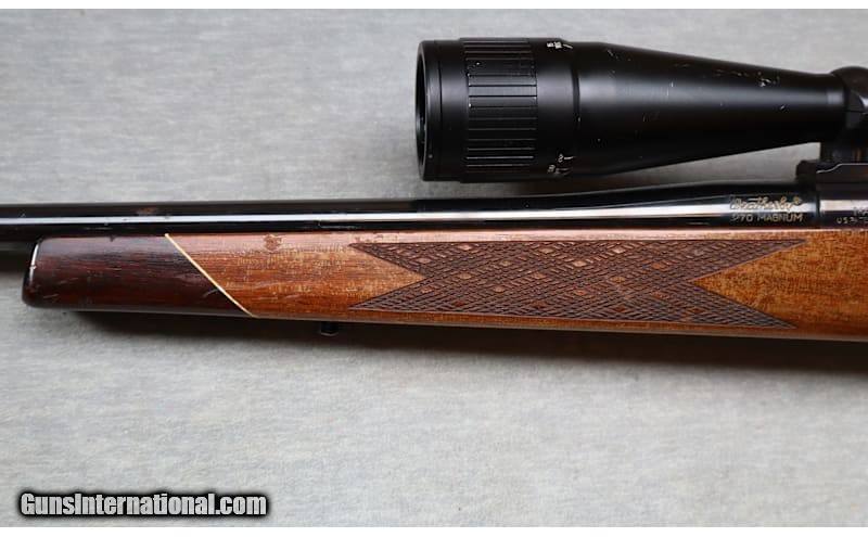 Description: Weatherby Mark V bolt action rifle with a 24 inch barrel and chambered in .270 WBY MAG. Topped off with a Tasco scope. Stock has lost it's varnish. Weathered is a good description for this Weatherby. .270 Weatherby Magnum Metal Condition: good Wood Condition: good Bore Condition: bright Barrels: 24" barrel Stock Dimensions: 13.75 Fore End: checkered wood Butt Pad: rubber Weight: 9 lb - 2 oz incl scope Sights: Tasco scope Item Location: La Vista, NE Price: $1,299.99 Contact Seller |