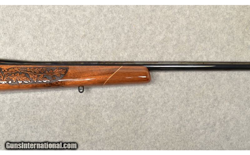 Description: This Weatherby Mark V is in excellent condition and the laser engraved stock is a work of art. This will make an amazing addition to your collection and this rifle will also be great for hunting or target practice at the range. There are scope rings to attach any optic you see fit. The bluing on the rifle is in excellent condition, the action is extremely smooth, and the trigger break is very light with a super crisp break. .270 Weatherby Magnum SOLD Chambers: .270 Weatherby Magnum Metal Condition: Excellent Wood Condition: Excellent Bore Condition: Excellent Barrels: "Rifled, 24"" Stock Dimensions: 13.5" LOP Fore End: Wood Butt Pad: Rubber Weight: 7 lbs Sights: Scope rings Item Location: Columbus, OH |