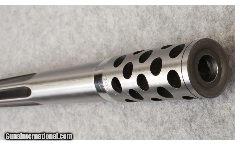 Description: Weatherby Mark V rifle chambered in .30-378 Weatherby Magnum. Rifle has no sights, but has scope mount. Barrel is 26 inches, fluted stainless steel with compensator. Bore is in excellent condition and is bright with strong rifling. Metal is in excellent condition with light handling marks on compensator and light wear on edges of magazine floorplate. Synthetic stock is in excellent condition with no defects. Buttpad is a rubber Pachmayr Decelerator buttpad for recoil management. Rifle is in overall excellent condition. .30-378 Weatherby Magnum SOLD Chambers: .30-378 Weatherby Magnum. Metal Condition: Excellent with light handling marks on compensator and light wear on magazine floorplate edges. Wood Condition: Synthetic stock is in excellent condition with no defects. Bore Condition: "Excellent, bright and shiny with strong rifling. Barrels: "26 inches, fluted stainless steel with compensator. Butt Pad: Rubber Pachmayr Decelerator buttpad. Weight: 8 lbs. 11 oz. Sights: "No sights, but has scope mount. Item Location: Tualatin, OR |