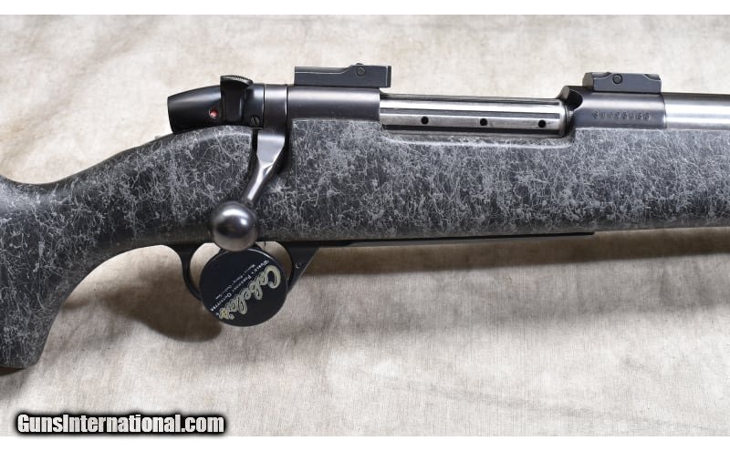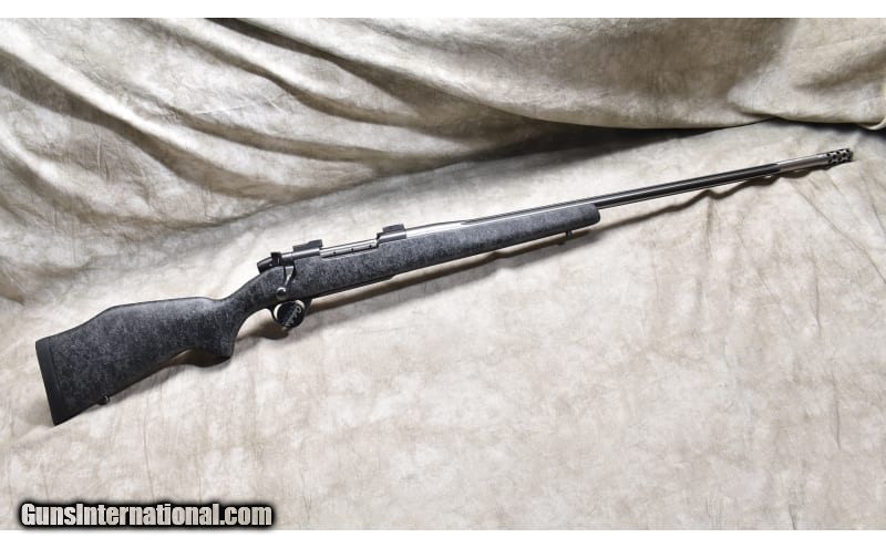 Description: Nice rifle featuring stainless steel fluted barrel, internal box magazine with hinged floor plate, muzzle brake, and soft recoil pad. .30-378 Weatherby Magnum SOLD Chambers: 3 rounds Metal Condition: Excellent. Very minor handling marks. Wood Condition: Excellent. Bore Condition: Bright and shiny with good rifling. Barrels: 26-inch fluted stainless steel with muzzle brake Triggers: Factory trigger Stock Dimensions: 13-1/2 inch LOP Butt Pad: Soft rubber pad. Weight: 8 lb - 6 oz Sights: Set up for scope with bases. Item Location: Rogers |