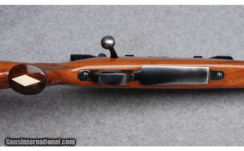 Description: This is a Weatherby Mark V rifle in .300 Weatherby Magnum marked "MADE IN W. GERMANY". The serial number dates to 1971. The action is in Excellent condition with the bolt shroud turning plum color. The barrel finish is Very Good with some wear and scratches at the muzzle and a wear spot on top of the barrel about 3 inches back from the end of the fore end. The stock is the classic Weatherby style with handling marks evident, particularly on the left side under the action and near the butt. The finish is not "checked" and condition is Very Good overall.The Weatherby ventilated butt pad is still present. This rifle is equipped with a Weatherby 2x to 7x scope marked "made in Germany" in side lever quick release mounts on 2 piece bases. The scope and mounts are included in the price of the rifle and will not be removed and the rifle repriced without them. SOLD Manufacturer: 1971 Caliber Info: .300 Weatherby Magnum Metal Condition: Very Good to Excellent Wood Condition: Very Good Bore Condition: Bright and Shiny Barrels: 24 Triggers: Serrated Stock: Skip Checkered Walnut Monte Carlo Style with Rosewood Pistol Grip and Fore End Caps Stock Dimensions: LOP 13 1/4 Butt Pad: Factory Weatherby Ventilated Rubber Pad Sights: Made in Germany Weatherby Variable 2x to 7x Scope in Side Lever Quick Release Mounts on 2 Piece Bases Item Location: Reno, NV |
