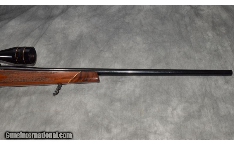Description: The Weatherby Mark V is a center fire, bolt-action rifle manufactured by Weatherby in West Germany. The rifle was introduced in 1957 by Weatherby and was designed to safely contain the high pressures associated with the Weatherby line of high performance cartridges. It is the flagship rifle of the Weatherby line of firearms. The 9 Lug Magnum action was the original design which went into production and was also the design which was subject to the strength testing conducted by Weatherby. The original 9 Lug design lacked the bolt fluting and featured a safety mounted on the receiver. The refinements to the original design included a fluted bolt and a redesigned safety allowing for smoother feeding and extraction and a safer design. The 9 Lug action is considered the archetypal Mark V action. The 9 Lug design features a bolt head with nine locking lugs arranged in three rows with each row having three locking lugs. SOLD Caliber Info: 300 Weatherby magnum. Chambers: 3+1 bolt action repeater. Metal Condition: Good - minor surface issues on barrel, and minor handling wear on reciver. Wood Condition: Very Good, minor carry and handling wear. Bore Condition: Very good, clean with crisp rifling. Barrels: 26 inch blued. Triggers: Single. Stock: Checkered monte carlo walnut with pistol grip and rosewood caps. Stock Dimensions: 13 inch LOP, 43 inch overall. Fore End: Side checkering with rosewood cap. Butt Pad: Factory recoil reducing. Weight: 10lbs 3 oz. Sights: Leupold 3-9x40. Item Location: Chesterfield, MI |
