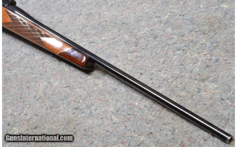 Description: This bolt action rifle is a Weatherby Mark V chambered in .300 Weatherby Magnum. It has a 24" blued steel barrel, scope base mount, and walnut wood furniture. This rifle is in overall good to very good condition with little sign of use throughout. SOLD Caliber Info: .300 Wby. Mag. Metal Condition: Good to very good with little sign of use Wood Condition: Good to very good with little sign of use Bore Condition: Shiny and bright with little to no sign of use Barrels: 24" Blued steel barrel Triggers: Single stage trigger Stock: Walnut wood stock with checkered grip Stock Dimensions: 13 1/2" LOP Fore End: Walnut wood stock Butt Pad: 3/4" rubber recoil pad Weight: 7lbs 12oz Sights: Scope base mount Item Location: Wichita, KS |