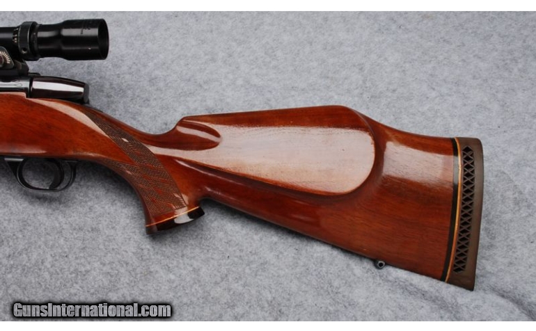 Description: SOLD Manufacturer: 1959, West Germany Caliber Info: .300 Weatherby Magnum Metal Condition: Excellent Wood Condition: Very Good Bore Condition: Strong Rifling Barrels: 24 Triggers: Single with wide trigger shoe Stock: Walnut Stock Dimensions: LOP: 13 3/4 Butt Pad: Rubber Weight: 9 lb. Scoped Sights: Bausch and Lomb 2.5-8 Scope Item Location: Post Falls, ID |