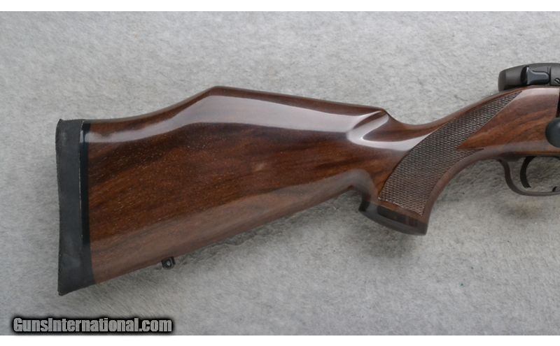 Description: This Weatherby Model Mark V is a right hand bolt action rifle in .300 Wby. Mag. Cal. Only. It has a 26 inch barrel. It is drilled and tapped for a scope mount. No iron sights. The butt stock is a checkered grip walnut pistol grip with a raised cheekpiece and rosewood cap. The forearm is a checkered grip walnut with a rosewood tip. Triggertech trigger. 54 degree bolt. Cerakote. SUB-MOA. Made in U.S.A. .300 Weatherby Magnum SOLD Chambers: Internal magazine with a hinged floorplate. Metal Condition: Excellent. Wood Condition: Excellent. Bore Condition: Excellent. Barrels: 26 inch barrel with a threaded end. Stock Dimensions: LOP 13 3/8 inches. Fore End: Checkered grip walnut with a rosewood tip. Butt Pad: Decelerator black rubber recoil pad. Weight: 7 lb. 12 oz. Sights: Drilled and tapped for a scope mount. No iron sights. Item Location: Richfield, WI |