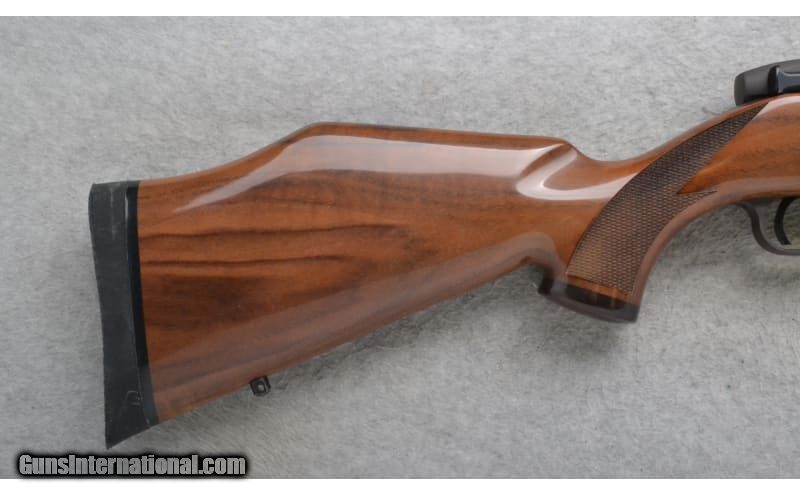 Description: This Weatherby Model Mark V is a right hand bolt action rifle in .300 Wby. Mag. Cal. Only. It has a 26 inch threaded end barrel. It is drilled and tapped for a scope mount. No iron sights. The butt stock is a checkered grip walnut pistol grip with a raised cheekpiece and rosewood tip. The forearm is a checkered grip walnut with a rosewood tip. SUB-MOA. Cerakote. 54 degree bolt. Triggertech trigger. Made in U.S.A. .300 Weatherby Magnum SOLD Chambers: Internal magazine with a hinged floorplate. Metal Condition: Excellent. Wood Condition: Excellent. Bore Condition: Excellent. Barrels: 26 inch threaded end barrel. Stock Dimensions: LOP 13 1/4 inches. Fore End: Checkered grip walnut with a rosewood tip. Butt Pad: Decelerator black rubber recoil pad. Weight: 7 Lb. 14 Oz. Sights: Drilled and tapped for a scope mount. No iron sights. Item Location: Richfield, WI |