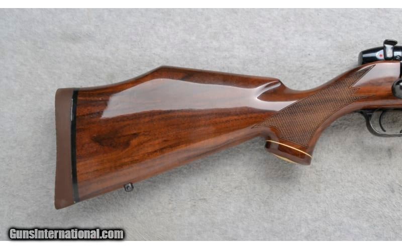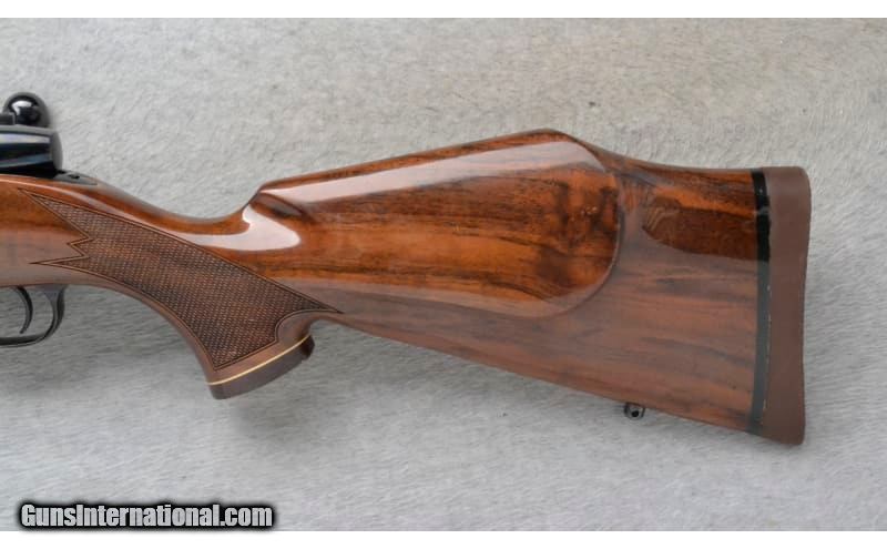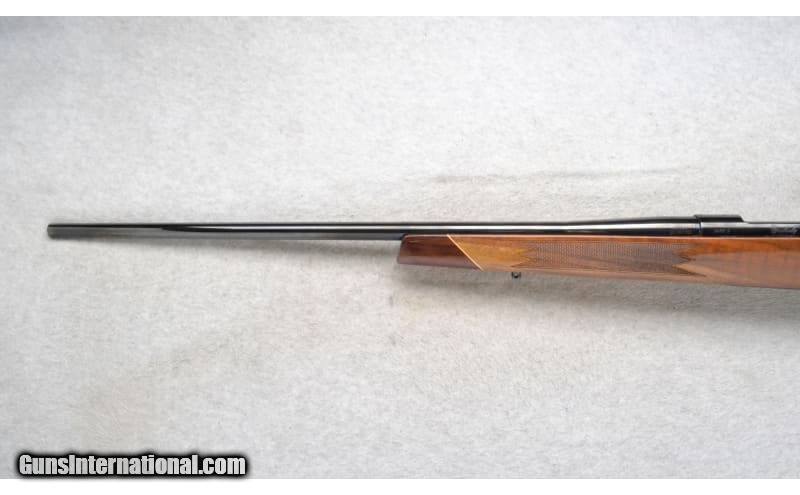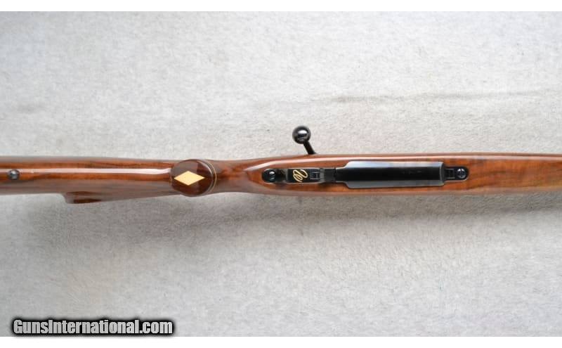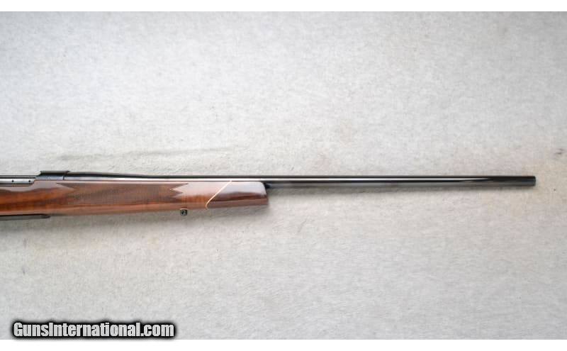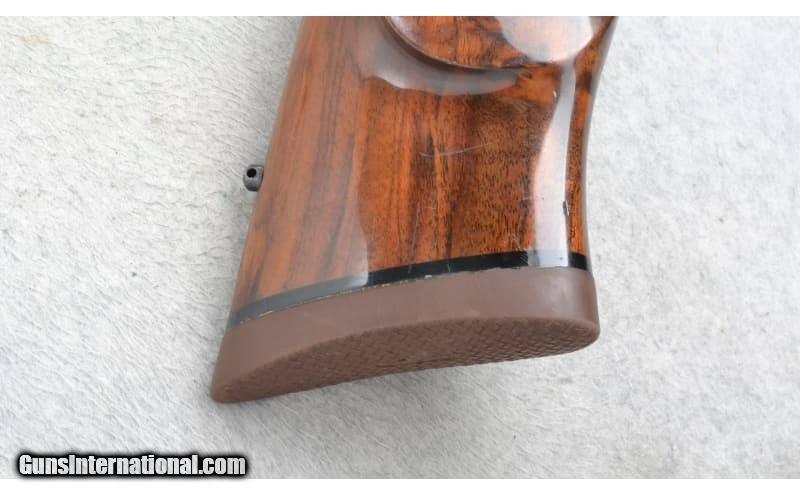 Description: This Weatherby Model Mark V is a right hand bolt action rifle in .300 Weatherby Magnum Cal. Only. It has a 26 inch barrel. It is drilled and tapped for a scope mount. The butt stock is a checkered grip walnut pistol grip with a raised cheekpiece and rosewood cap. The forearm is a checkered grip walnut with a rosewood tip. Made in U.S.A. .300 Weatherby Magnum SOLD Chambers: Internal magazine with a hinged floorplate. Metal Condition: Very Good. A minor use marks. Wood Condition: Good. Has some light handling/use marks. Bore Condition: Excellent. Barrels: 26 inch. Stock Dimensions: LOP 13 1/2 inches. Fore End: Checkered grip walnut with a rosewood tip. Butt Pad: Brown rubber recoil pad. Weight: 8 lb. 8 Oz. Sights: It is drilled and tapped for a scope mount. Item Location: Richfield, WI |