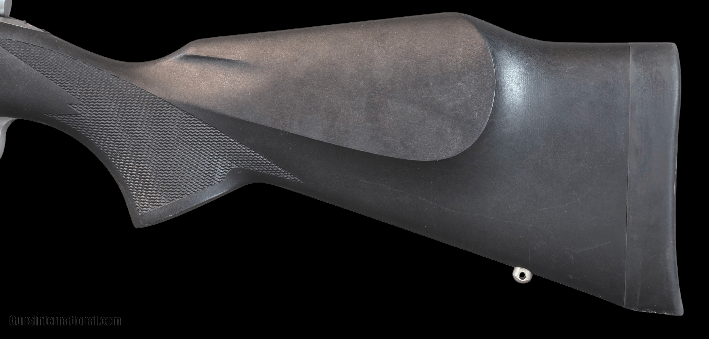 Description: Bear Arms Promotions LLC is proud to offer up this like new condition USA made Weatherby Mark V in 300 Weatherby Magnum. This American made bolt action also comes with a full case of Hornady Outfitter 180 Grain CX ammo. The rifle has a stainless finish and black composite stock. It has a 26" fluted barrel. Excellent bore and rifling. Weatherby rubber recoil pad. Leupold scope base already mounted. Non threaded barrel. Serial number is SS015623. (NOTE: THE PICTURES SHOWN IN THIS LISTING ARE FOR THE ACTUAL WEATHERBY RIFLE YOU WILL RECEIVE. (NOTE: ADD 3% FOR CREDIT CARD) BUYER PAYS $85 FOR SHIPPING. Rifle Caliber: .300 Weatherby Magnum Manufacturer: Weatherby Model: Mark V Serial Number: SS015623 Barrel Length: 26" fluted Condition: Like New Bore Condition: Excellent Action: Bolt Stock: Black synthetic Finish: Stainless Extras: Leupold scope base Price: $1,475.00 Shipping: $85.00 Buy Now Contact Seller |