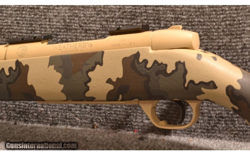 Description: Burnt Bronze Cerakote Weatherby in a popular caliber. In excellent shape with camo Monte Carlo fiberglass stock. No marks on stock or action complete with bases and swivel studs. SOLD Caliber Info: .300 Wby mag. Metal Condition: Excellent with no marks on action or barrel. Wood Condition: Excellent no marks on stock. Bore Condition: Shiny Barrels: Bolt action repeater 26 inch cerakote #2 barrel fluted.. Triggers: Cerakote steel. Stock: Monte carlo camo fiberglass with pistol grip. Stock Dimensions: LOP: 13 1/2 inch. Fore End: Camo fiberglass. Butt Pad: Black rubber. Weight: 8 lbs 8 oz. Sights: Drilled and tapped with bases. Item Location: Thornton, CO |