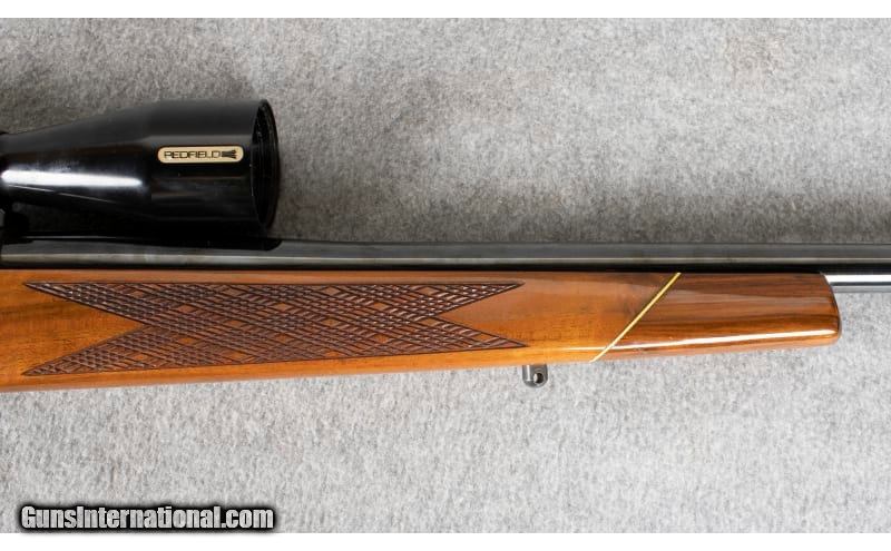 Description: The Weatherby Mark V is very nice rifle chambered in .300 Wby Mag. It has a high polished wood stocks and a deep blued 26" barrel. This rifle is topped with a Redfield 3x9-40 rifle scope. .300 Weatherby Magnum SOLD Metal Condition: "Very Good, Shows some light wear and scuffs. Wood Condition: "Very Good, Shows some light wear and scuffs. Bore Condition: Excellent Barrels: 26 Stock Dimensions: LOP 13.5 Butt Pad: Rubber Weight: 10 lb Sights: Redfield Illuminator 3x9-40 scope Item Location: East Hartford, CT |