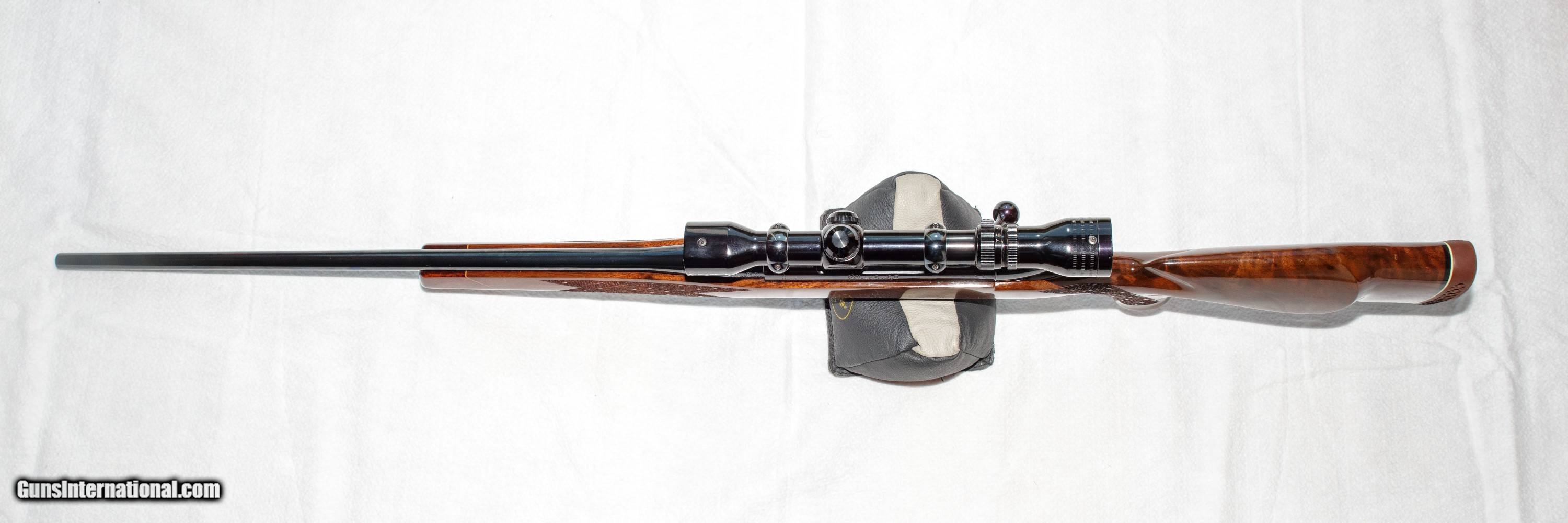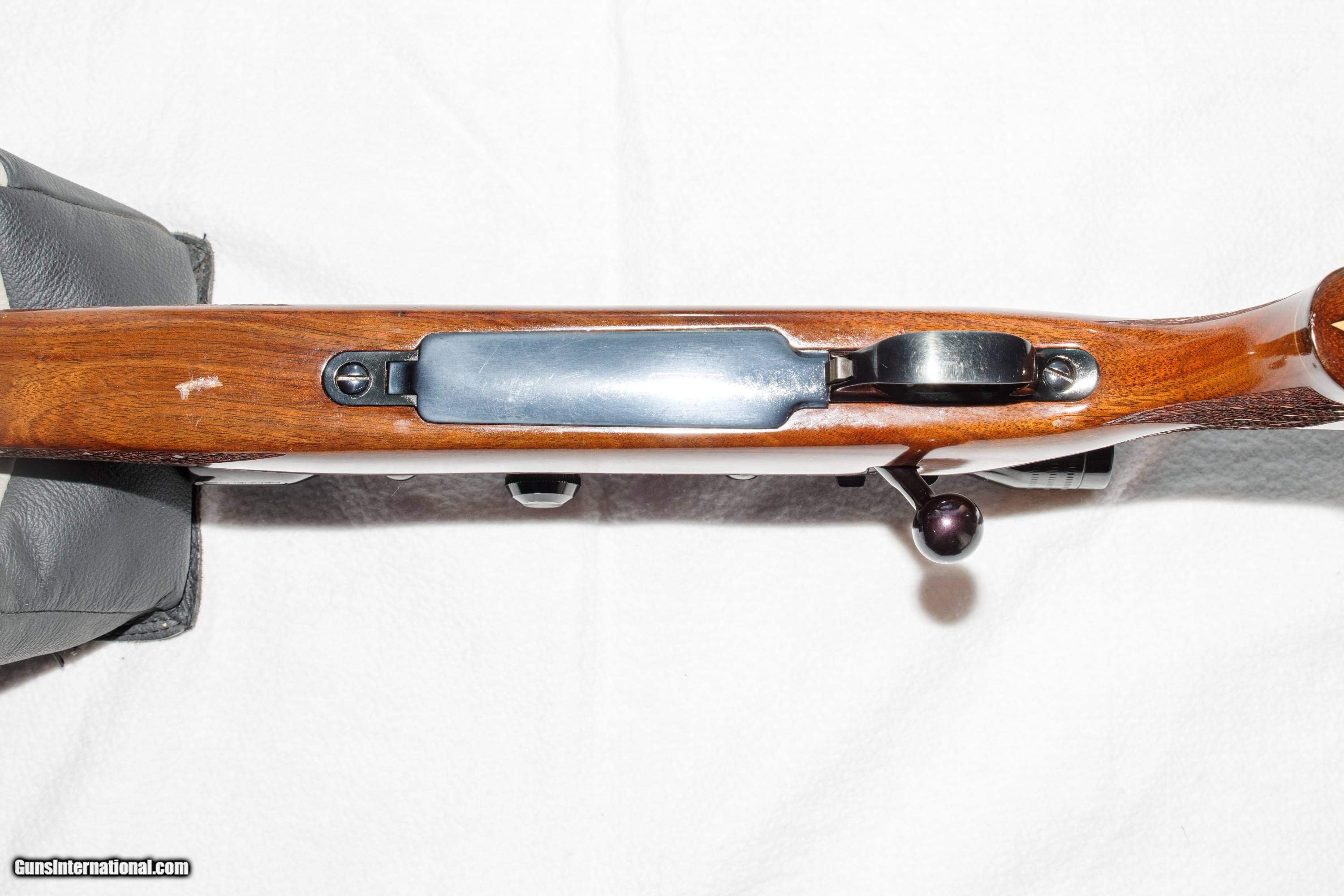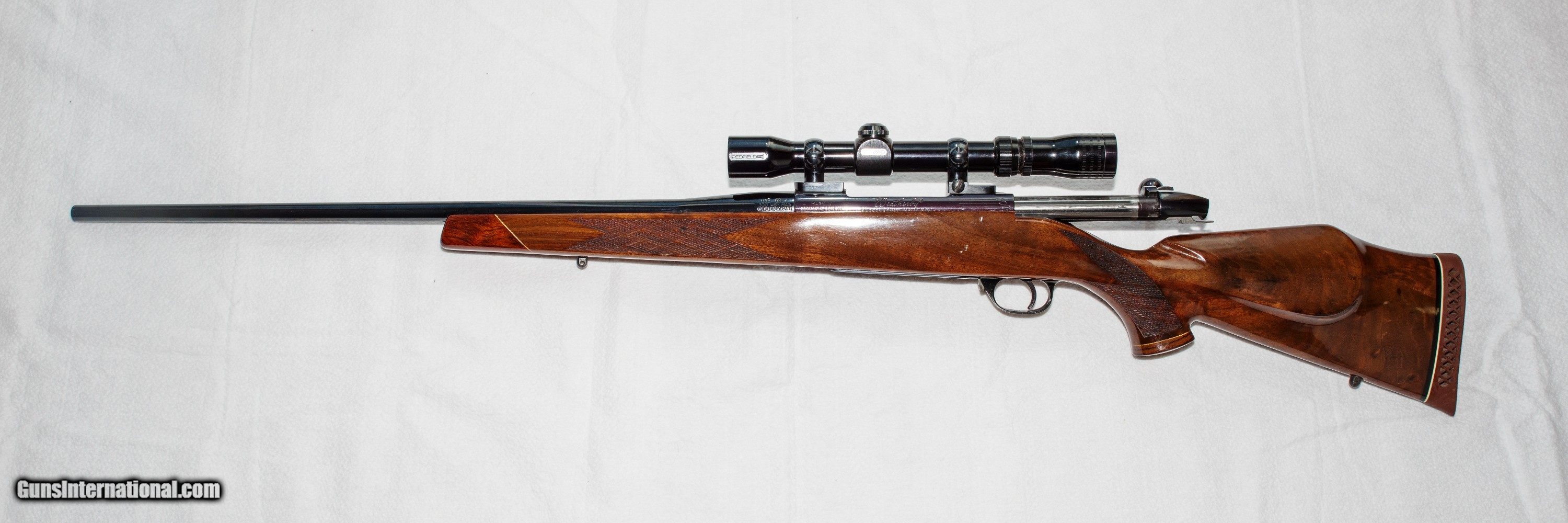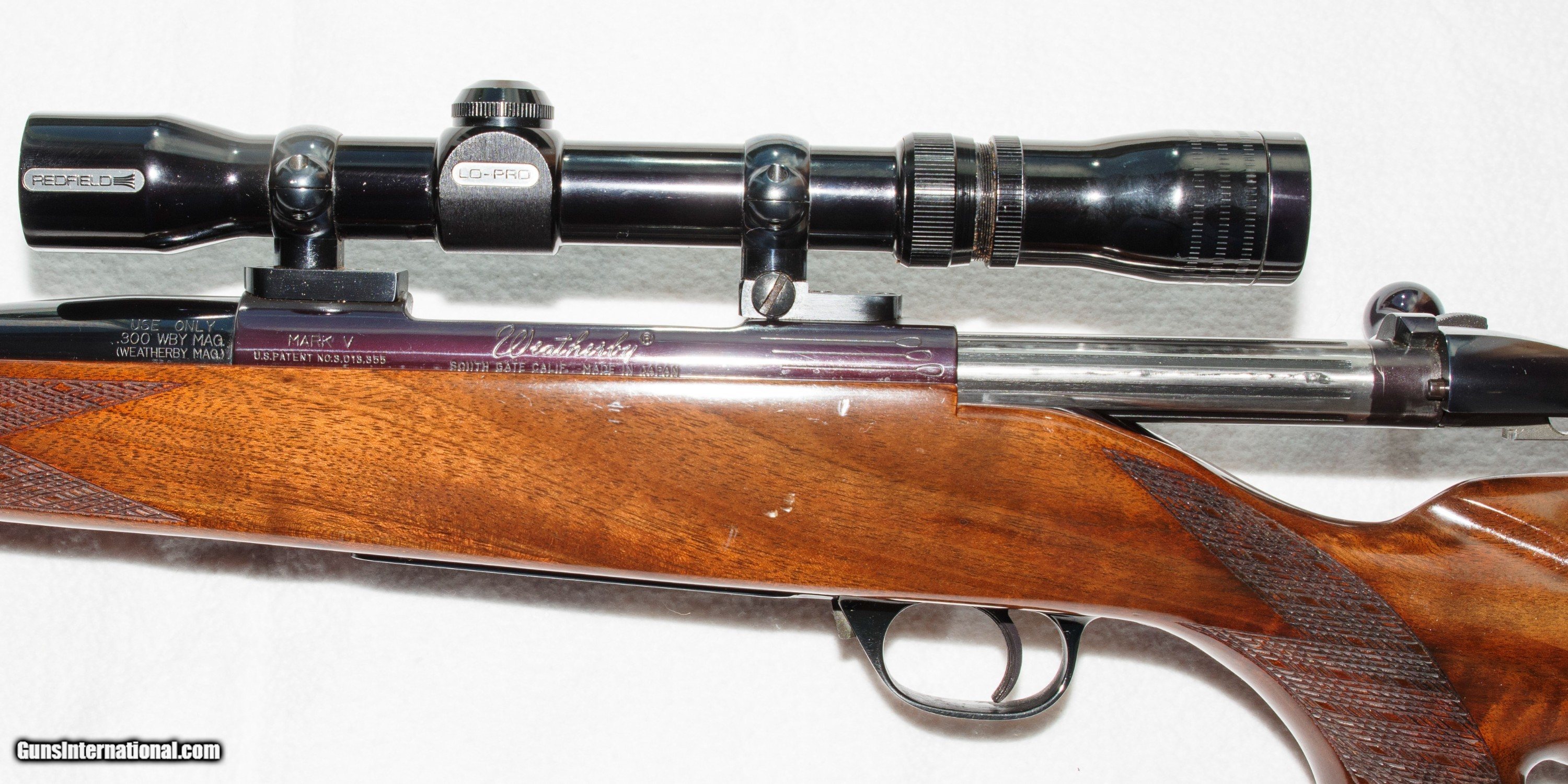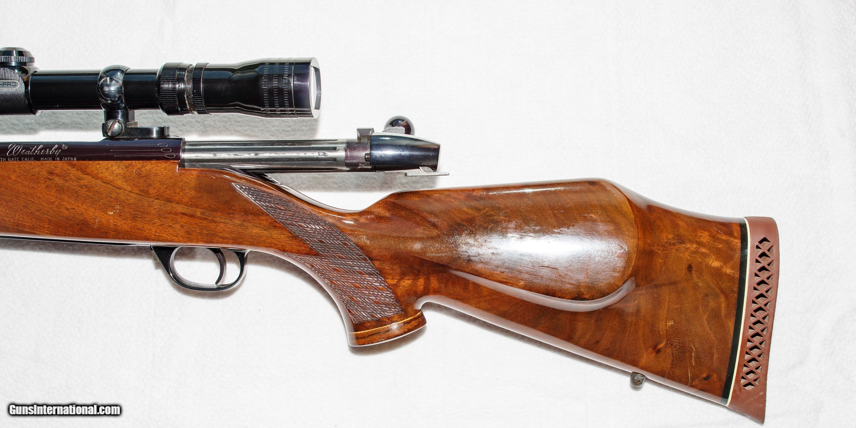 Description: WEATHERBY MARK V Bolt action 300 Wby magnum with 24" barrel. hinged floor plate, and factory original WEATHERBY recoil pad. It comes with a Redfield Widefield 2 x 7 scope. The rifle was used for hunting and has handling marks as shown in the pictures but overall the finish is good. The bore is in very good condtion with sharp rifling. The rifle was only used for sighting in and hunting. The butt stock is a diamond checkered grip walnut pistol grip with a raised cheek piece and rosewood cap. The forearm is a diamond checkered grip walnut with a rosewood tip. The action and trigger operation is crisp, overall a really nice rifle. Made in Japan in 1994. The rifle comes with approximately 50 rounds of factory ammunition. Ground shipping is $60. SOLD Rifle Caliber: .300 Weatherby Magnum Manufacturer: Weatherby Japan Condition: Good Metal Condition: Good Wood Condition: Good Bore Condition: Good |