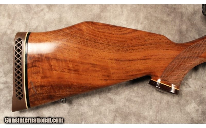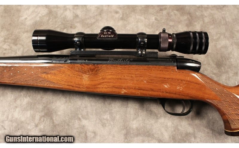 Description: Nice pre-owned Weatherby Mark V rifle in 300 Wby Magnum caliber, 26" Barrel with a 2x7 redfield scope mounted on rifle. .300 Weatherby Magnum SOLD Metal Condition: Very good some bluing loss from use. Wood Condition: Very good with light scratches from use Bore Condition: Excellent Weight: 7.5lbs Sights: 2 x 7 Redfield Scope Item Location: Mesa, AZ |