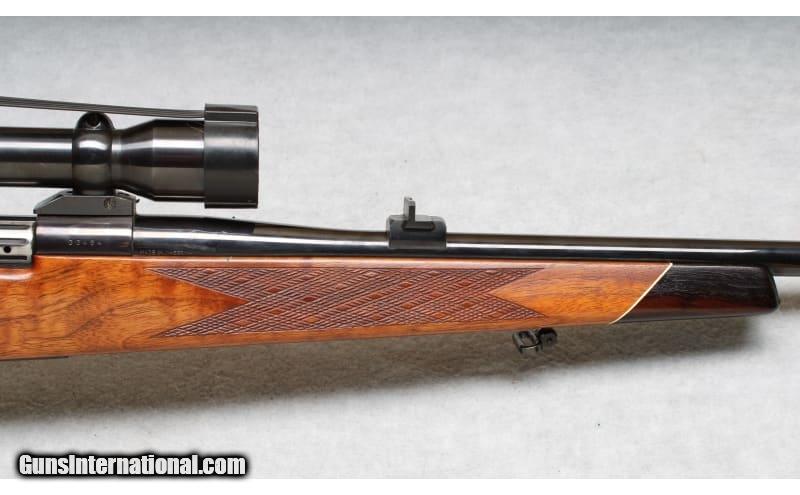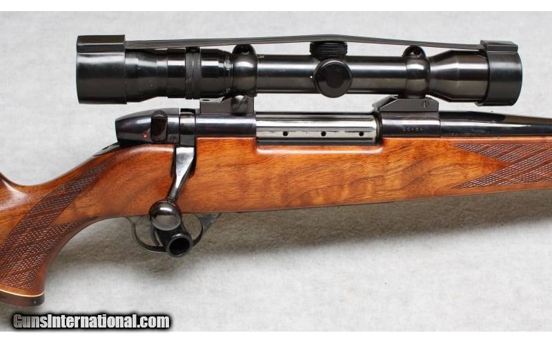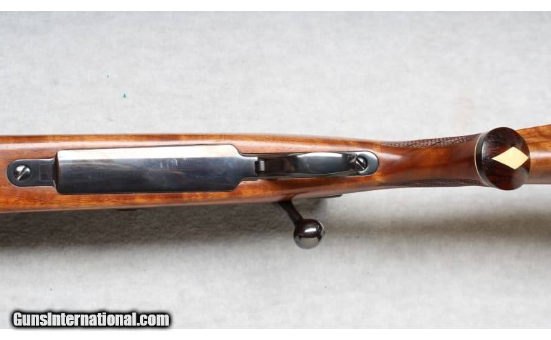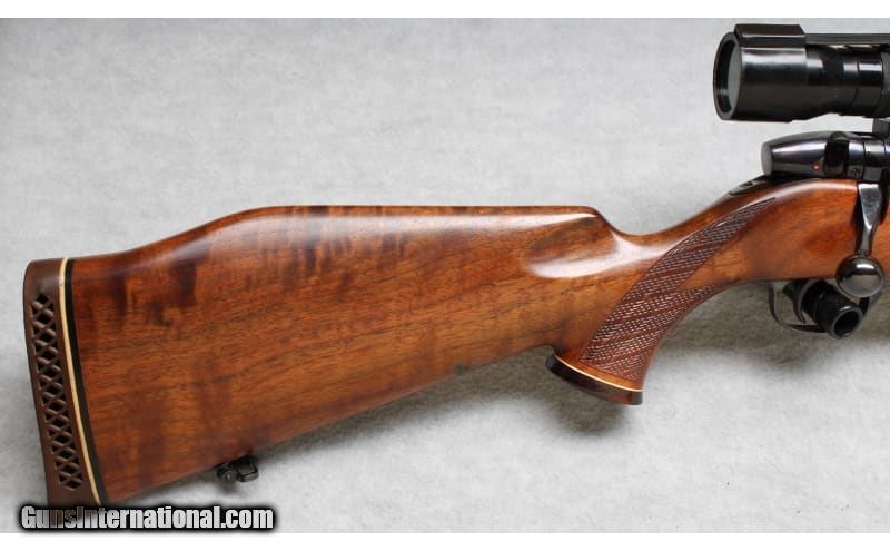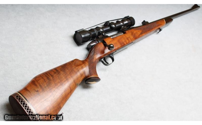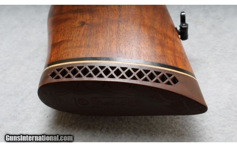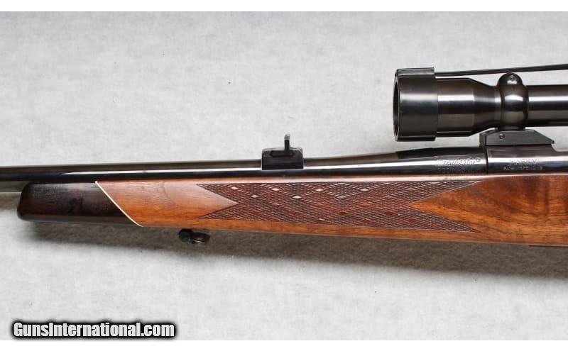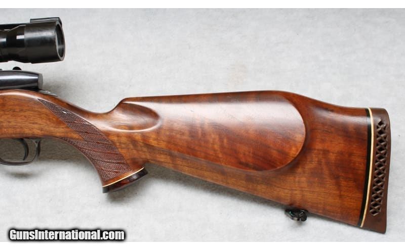 Description: Excellent condition, light wear, few small nicks and scratches. Beautifully finished Weatherby bolt action rifle - polished blue metal, 24" barrel chambered for the powerful .300 Weatherby Magnum cartridge, smooth action and crisp trigger pull. Both iron sights and Kahles scope installed. Nicely figured and checkered wood with contrasting forend tip & grip cap and Weatherby factory recoil pad. .300 Weatherby Magnum SOLD Chambers: Bolt action Metal Condition: Excellent Wood Condition: Excellent Bore Condition: Bright Barrels: 24 Triggers: Factory Stock Dimensions: 14 1/2" LOP Fore End: Checkered with contrasting tip Butt Pad: Factory pad Sights: Iron sights and Kahles 2.3-7x scope Item Location: Rapid City, SD |