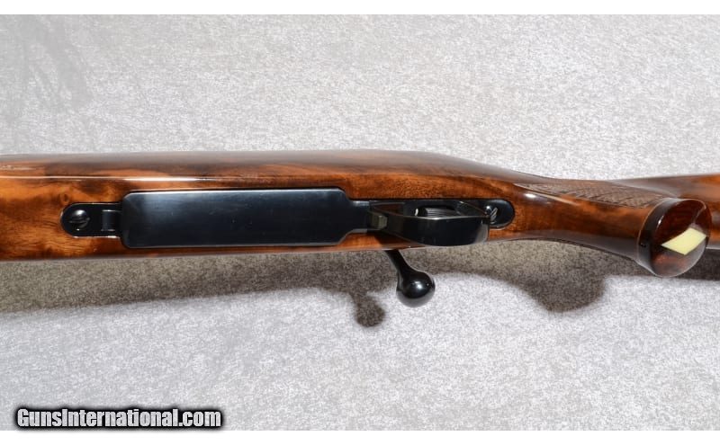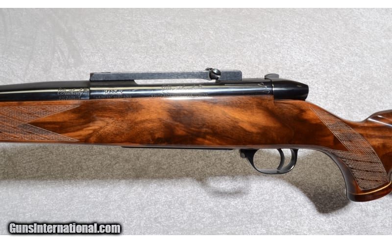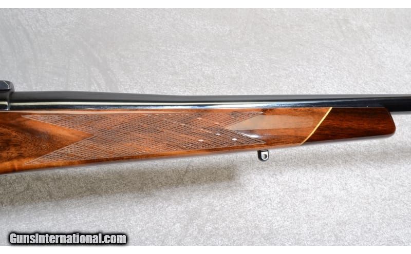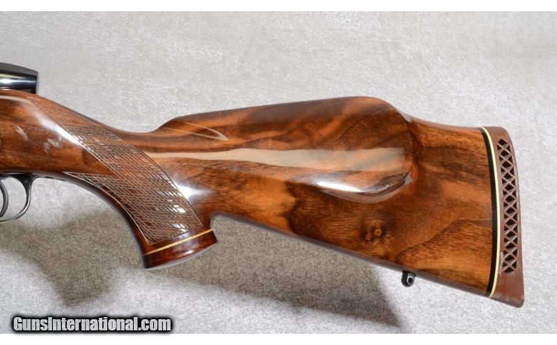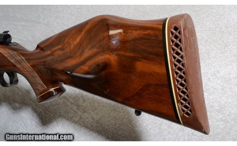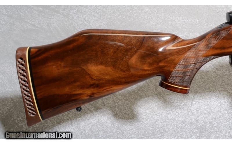 Description: This is a beautiful 99% Weatherby Mark V that was made in Japan for Weatherby. The stock is a fine quality walnut with strong dark detail. The finish is high gloss and in beautiful condition. the skip checkering is wonderfully performed. It has a Leupold scope mount already attached. It would make a great addition to the collection of a serious shooter or avid collector. .300 Weatherby Magnum SOLD Chambers: Bolt Action Metal Condition: Excellent deep blued and highly polished Wood Condition: Excellent Dark deeply featured fine Walnut Barrels: 26" High Polished Blued Barrel Triggers: Factory Trigger Fore End: Dark highly featured walnut with diamond skip checkering and Rosewood fore cap Weight: 9 lbs. Sights: Leupold one piece scope base Item Location: Tulalip, WA |