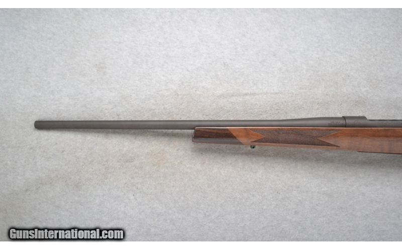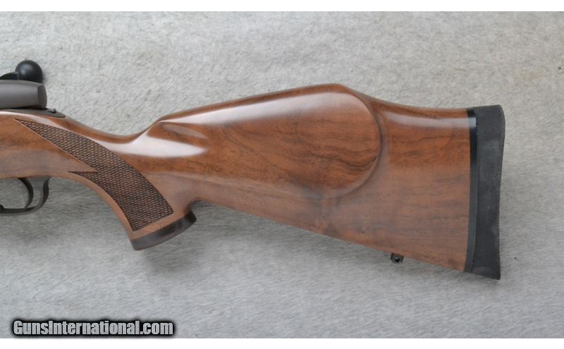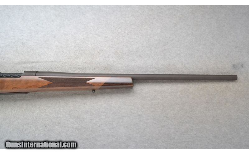 Description: This Weatherby Model Mark V is a right hand bolt action rifle in .300 Win. Mag. Cal. Only. It has a 24 inch barrel. It is drilled and tapped for a scope mount. No iron sights. The butt stock is a checkered grip walnut pistol grip with a raised cheekpiece and rosewood cap. The forearm is a checkered grip walnut with a rosewood tip. SUB-MOA. Cerakote. 54 degree bolt. TriggerTech Trigger. .300 Winchester Magnum SOLD Chambers: Internal magazine with a hinged floorplate. Metal Condition: Excellent. Wood Condition: Excellent. Bore Condition: Excellent. Barrels: 34 inch. Stock Dimensions: LOP 13 3/8 inches. Fore End: Checkered grip walnut with a rosewood tip. Butt Pad: Decelerator black rubber recoil pad. Weight: 8 lb. 1 oz. Sights: Drilled and tapped for a scope mount. No iron sights. Item Location: Richfield, WI |