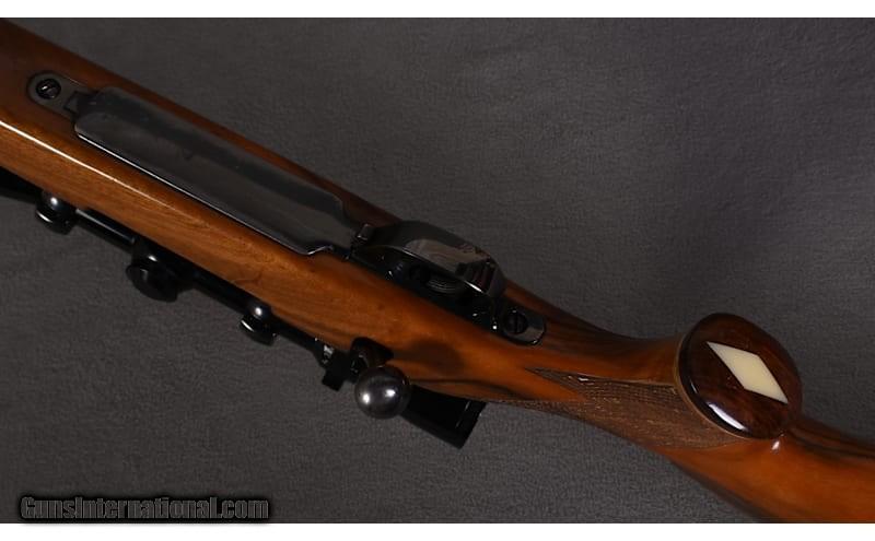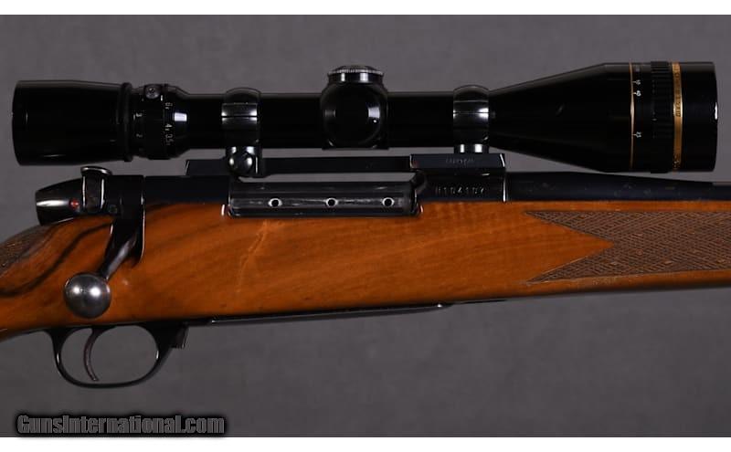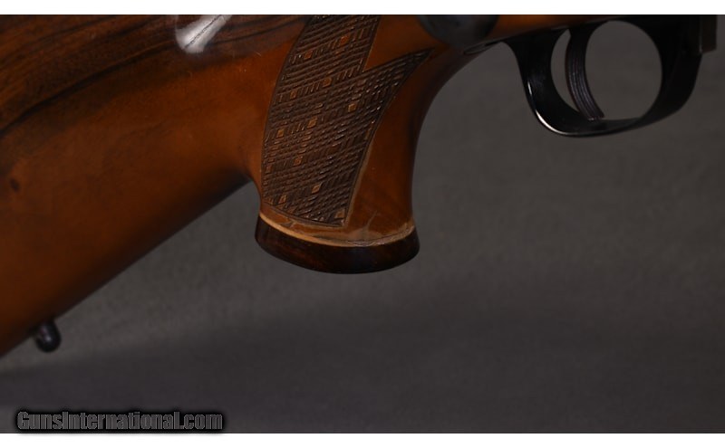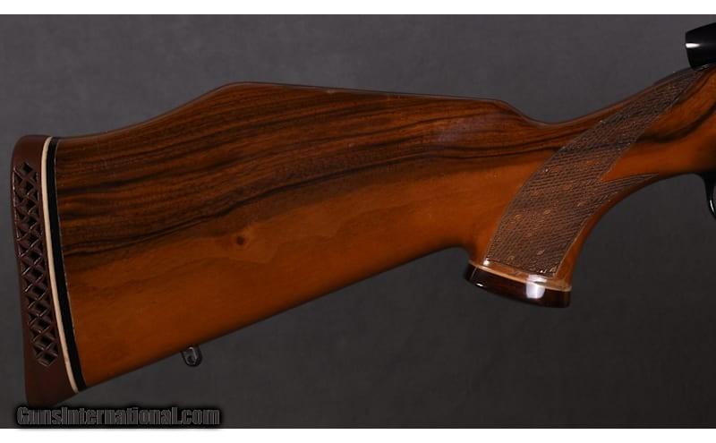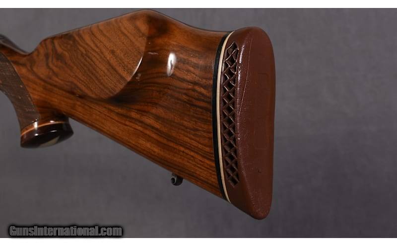 Description: This Weatherby Mark V chambered in .300 Winchester Magnum is a top-tier hunting and long-range platform prized for its robust action and high-velocity performance — perfect for serious hunters and Weatherby collectors. Likely produced during Weatherby's mid-1970s run (circa 1974–1981), this example pairs classic vintage appeal with modern capability. It features a beautiful American Claro walnut stock with rosewood forend cap and pistol-grip cap, accented by maple spacers and a refined diamond-point checkering pattern, all adding premium aesthetic and ergonomic touches. The rifle is in great condition overall, with only very minor pitting on the barrel and a slight cosmetic separation at the edge of the rosewood cap on the pistol grip; otherwise the metal, stock, and action show excellent preservation. Topped with a Leupold Vari-X III 3.5–10x scope and functioning reliably, this Mark V is a turnkey, hard-hitting choice for hunters who want Weatherby performance with collector-grade appointments. Please be sure to carefully review all photos provided to fully understand the condition of this firearm before purchasing. This firearm is being offered by the Boise Cabela's Gun Library. We will ship for free to your local Cabela's or Bass Pro Shops for transfer to you. If you are interested in purchasing or have any questions, please call the Boise Cabela's Gun Library directly at (208)-672-7922. Payment by credit card or Cabela's/Bass Pro Shops gift cards is required at the time of purchase. We cannot accept debit cards over the phone, so if you are ready to purchase, please have payment information available. Before calling, please also have the make, model, price, and Cabela's/ Bass Pro SKU or seller's inventory number from Guns International on hand. If you reach our voicemail, please leave a message with this information, and we will return your call as soon as possible. Thank you for your interest. .300 Winchester Magnum SOLD Metal Condition: Great Wood Condition: Great Barrels: 24 Stock Dimensions: 13.5" LOP Butt Pad: Weatherby brown rubber vented buttpad Weight: 9.1 lbs Sights: Leupold Vari-X III 3.5–10x scope Item Location: Boise, ID |