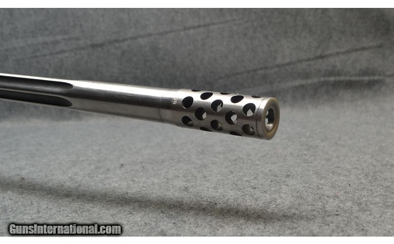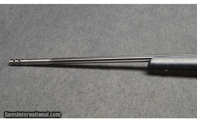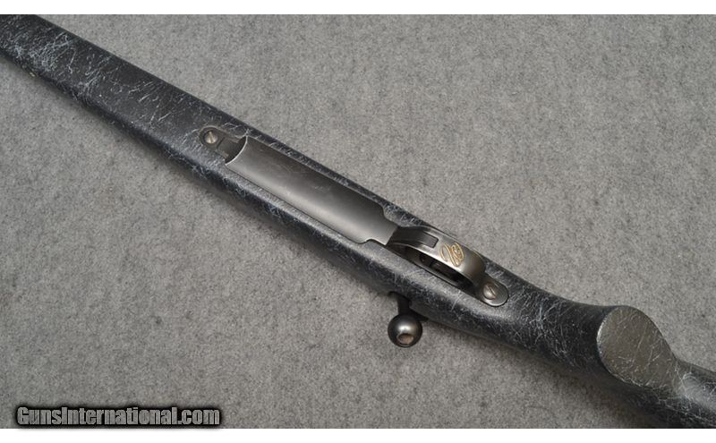 Description: This rifle is a Weatherby Mark V chambered in .338-378 Weatherby Magnum. It has a synthetic stock, stainless steel barrel, and is drilled and tapped for a scope. This firearm is in good condition, with light surface wear from handling and use. .338-378 Weatherby Magnum SOLD Metal Condition: "Good, some light surface wear and pitting on the barrel Wood Condition: "Good, some scuffs from handling and use Bore Condition: Bright and shiny with very crisp rifling Barrels: 27" fluted stainless steel with factory muzzle break Stock Dimensions: 14" LOP Fore End: Black synthetic stock with grey webbing Butt Pad: 1" rubber butt Weight: 8lbs 6oz Sights: Drilled and tapped for a scope Item Location: Wichita, KS |