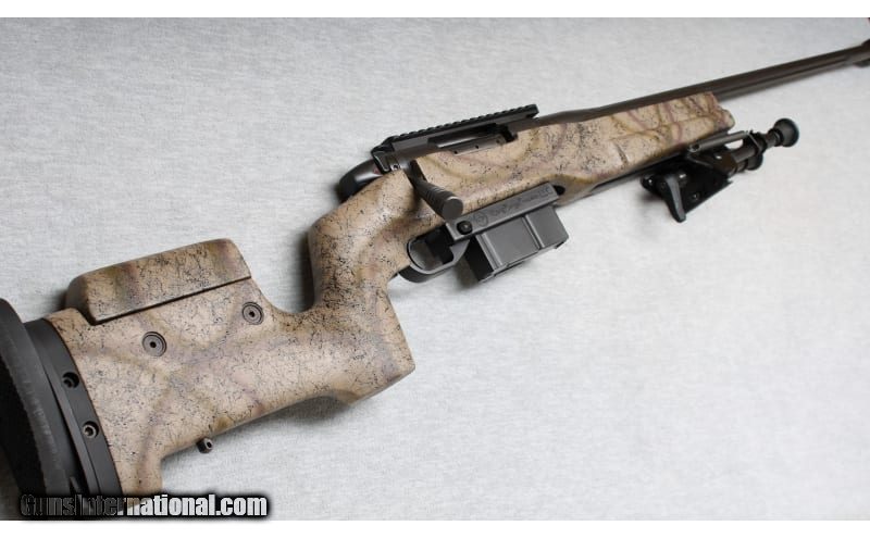 Description: Excellent condition, light wear and handling marks, comes with hard case. Superbly crafted magnum bolt action rifle - 26" fluted Krieger barrel with muzzle brake, tactical type large bolt handle, receiver rail for scope mounting, ultra smooth action and crisp trigger pull. Composite stock with wide flat forend and an adjustable bipod track, pronounced pistol grip and Pachmayr adjustable recoil pad. Harris bipod and sling swivel mounts installed. .338-378 Weatherby Magnum SOLD Chambers: Bolt action Metal Condition: Excellent Wood Condition: Excellent Bore Condition: Bright Barrels: 26 Triggers: Factory Stock Dimensions: 13 1/4" LOP Fore End: Wide and flat with adjustable bipod track Butt Pad: Pachmayr adjuatable Sights: Receiver rail for scope mounting Item Location: La Vista, NE |