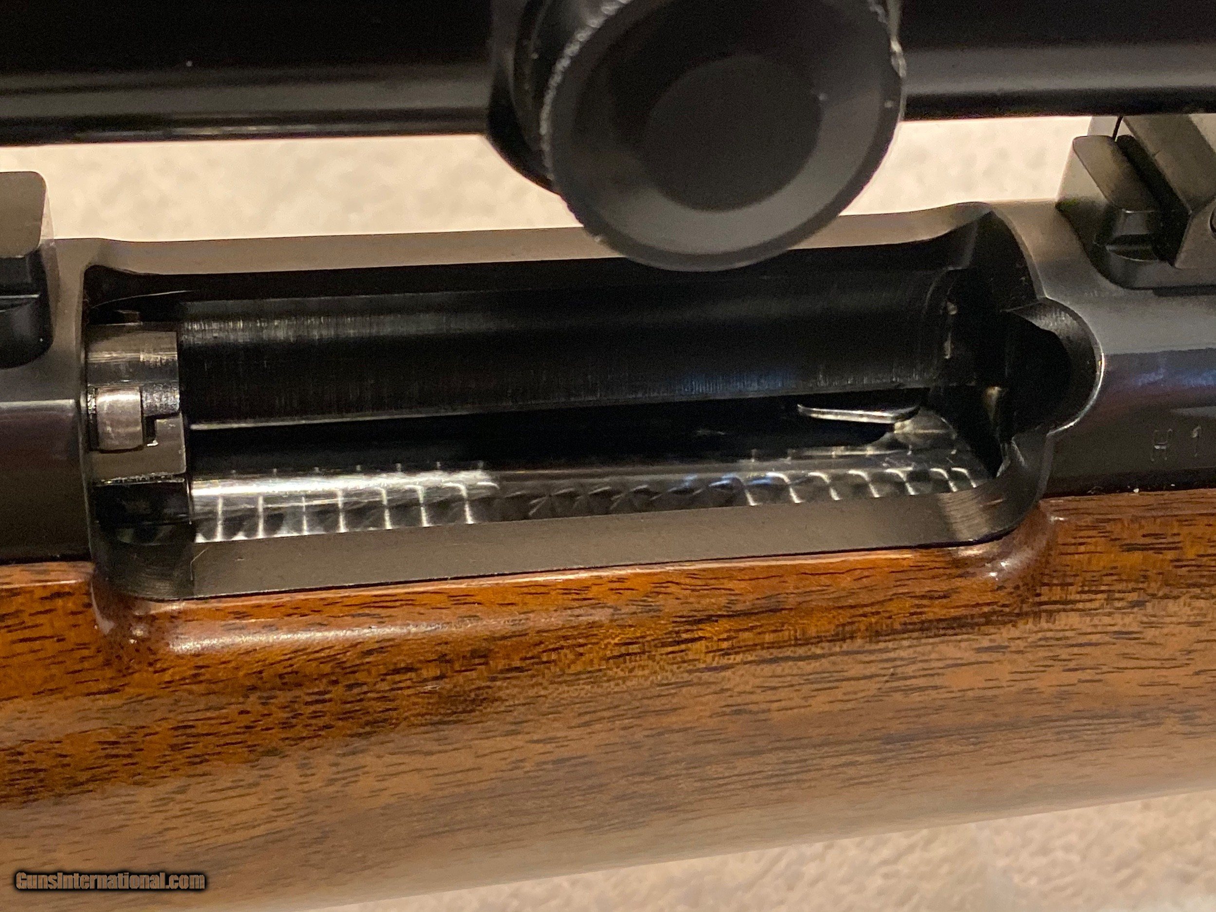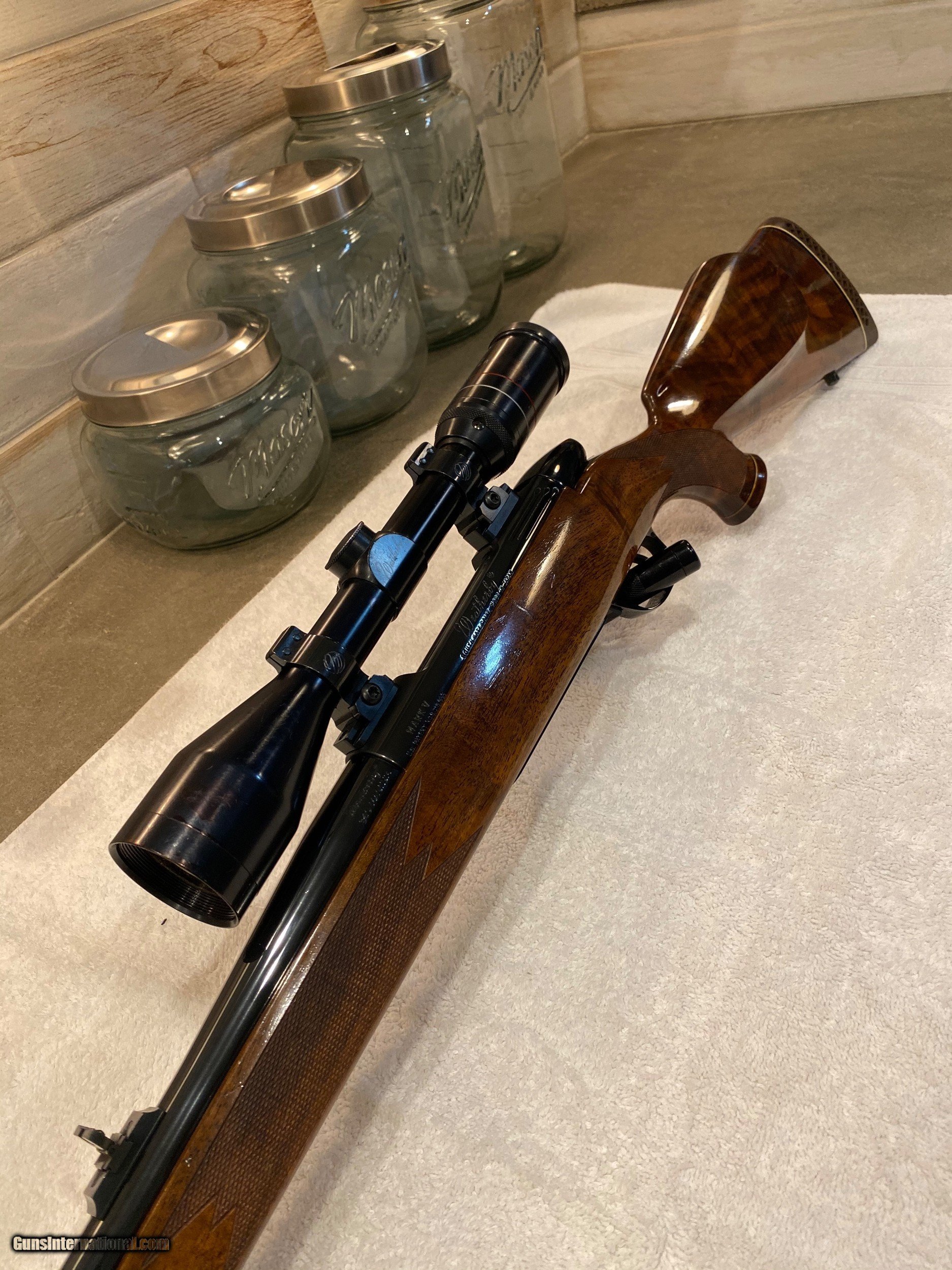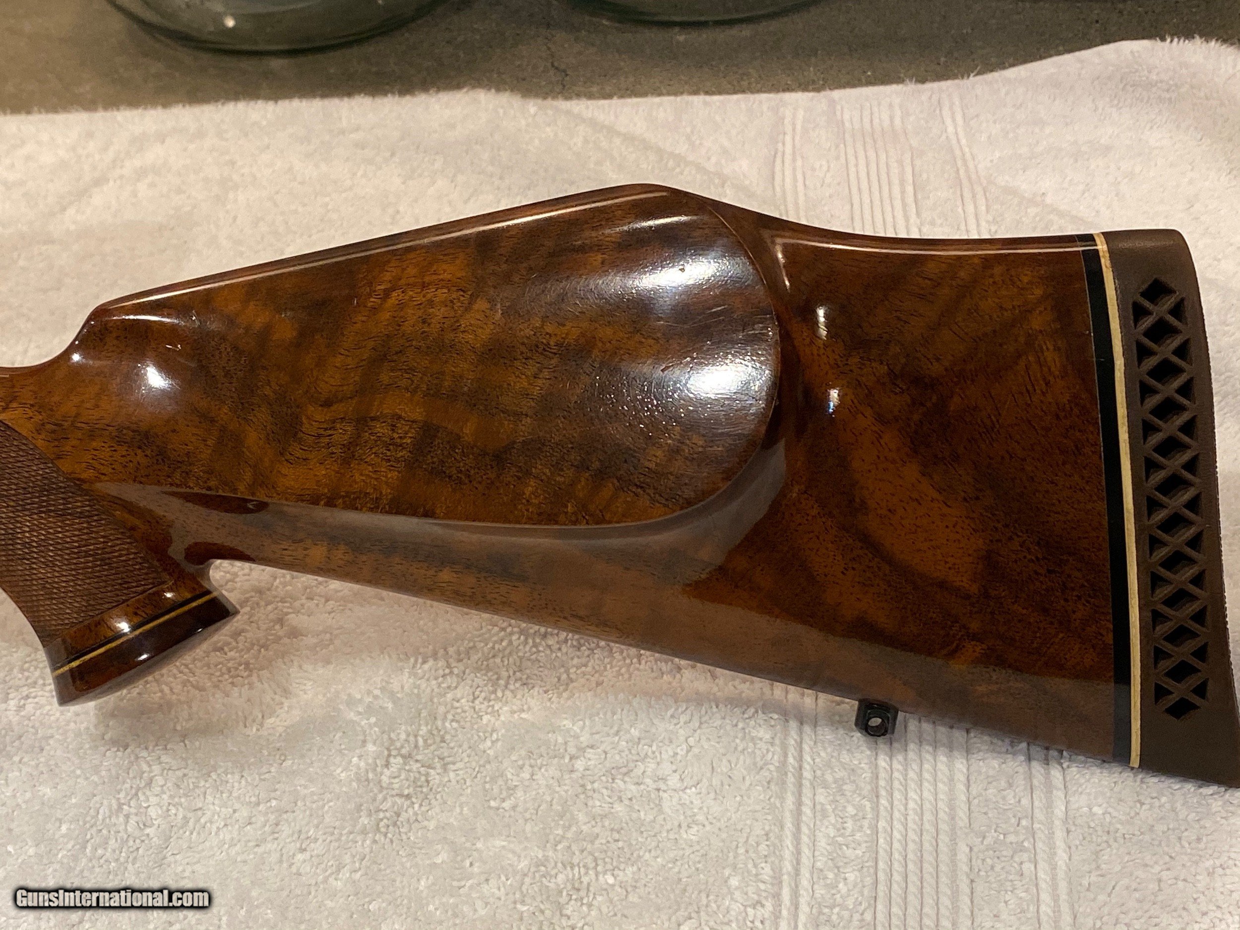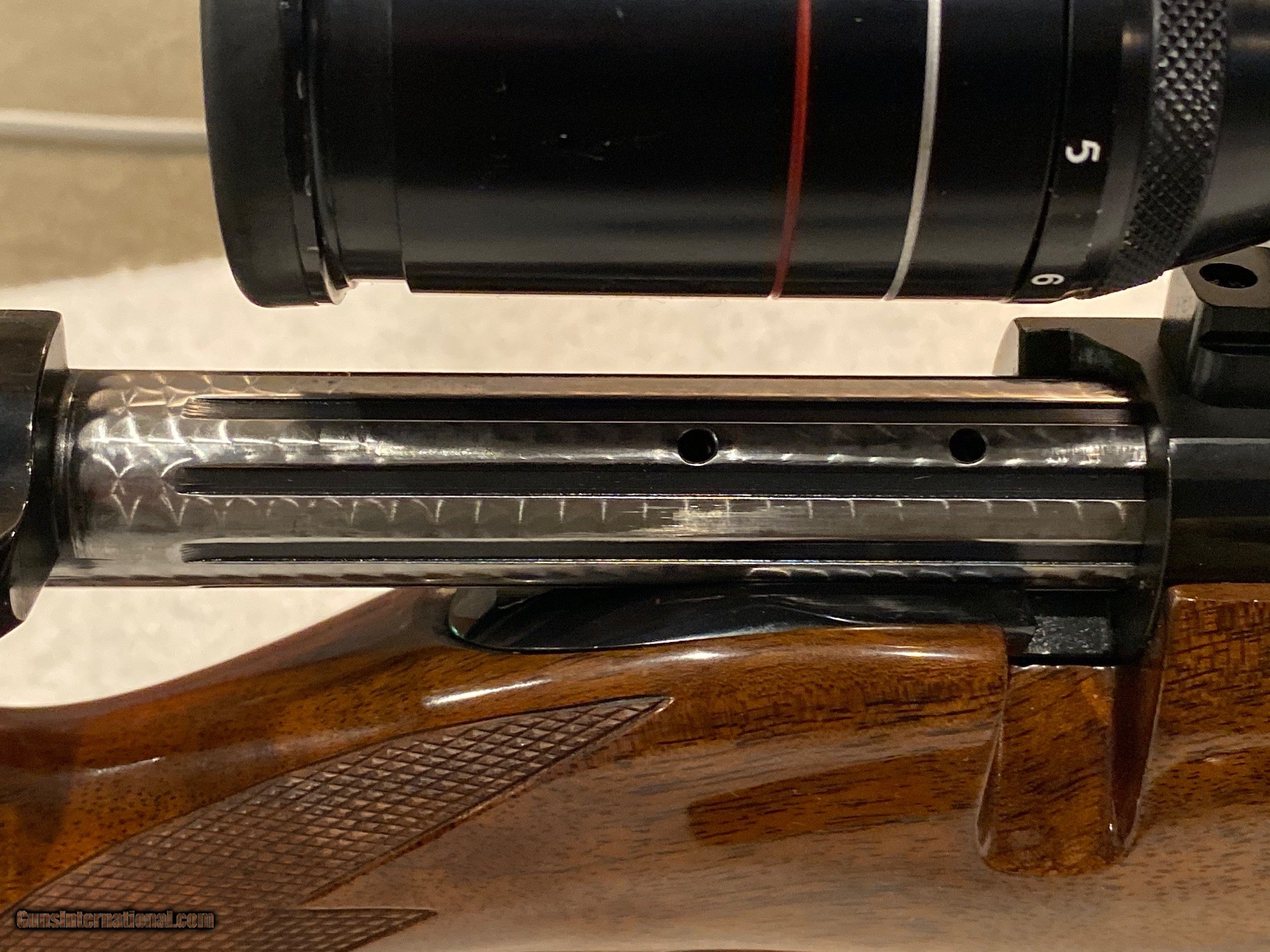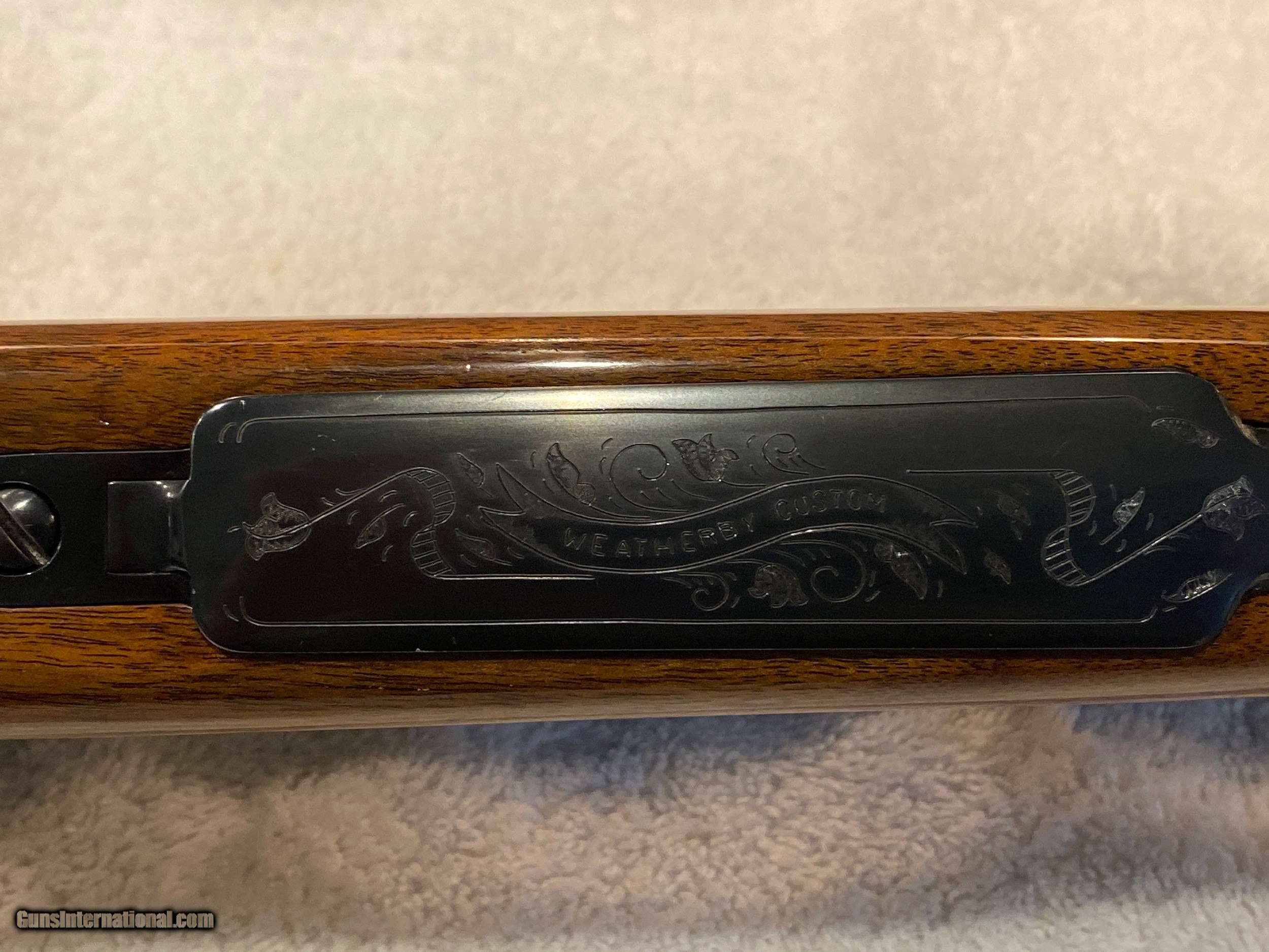 Description: Weatherby Mark V 340 custom. Pendleton break Weatherby supreme 3-9x44 scope with tally rings and bases, 26 inch barrel and open sites jeweled bolt and follower. The bluing is in great condition with a few handling marks on the stock engraved floor plate, made in Japan. SOLD Manufacturer: Weatherby Model: Mark V Custom Serial Number: H117850 Caliber Info: 340 Condition: Great Metal Condition: Great Wood Condition: Good |