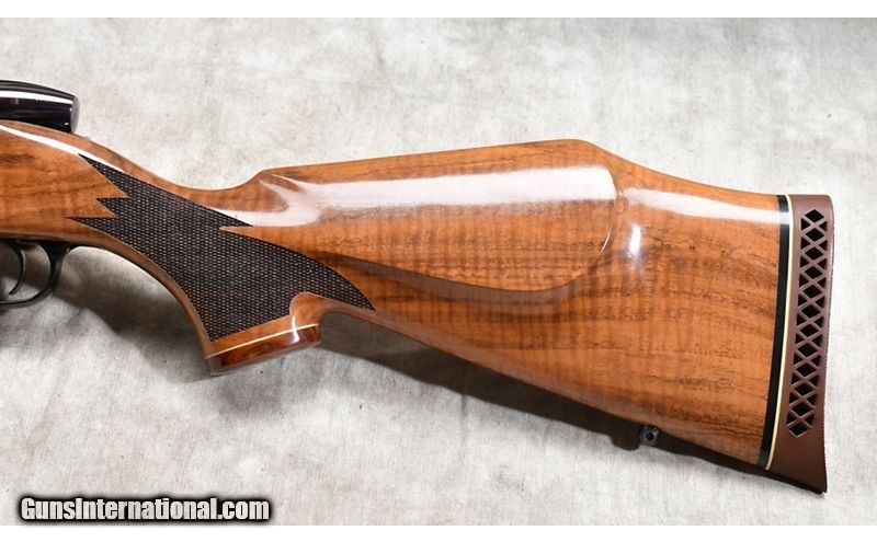 Description: The features include a nice walnut Monte Carlo stock with rosewood grip and tip caps. It has a jeweled bolt with nine locking lugs. It has an internal box magazine with hinged floor plate and is set up for your choice of scope. .340 Weatherby Magnum SOLD Chambers: 4 Metal Condition: Excellent Wood Condition: Excellent Bore Condition: Shiny and bright Barrels: 26-inch Triggers: Factory trigger Stock Dimensions: 13-1/2 inch LOP Butt Pad: Soft ventilated rubber pad. Weight: 8 LB - 10 OZ Sights: Set up for Scope Item Location: Rogers |