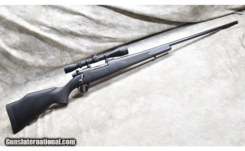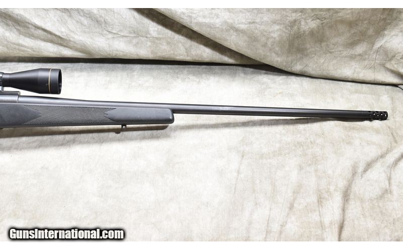 Description: The features of this Weatherby Mark V include a black synthetic Monte Carlo stock with soft recoil pad, fluted bolt with 9-lug lockup, muzzle brake, and chambered for the powerful .340 Weatherby Magnum cartridge. .340 Weatherby Magnum SOLD Chambers: 4 Metal Condition: Very good to excellent. It has some very fine handling marks. Wood Condition: Very good to excellent. Bore Condition: Shiny and bright with good rifling. Barrels: 27 inches inclusive of muzzle brake. Triggers: Factory trigger. Stock Dimensions: 13-1/2 inch LOP Butt Pad: Soft and thick rubber pad. Weight: 9 lb - 9 oz Sights: Set up for scope and outfitted with Leupold 4 to 12x scope. Item Location: Rogers |